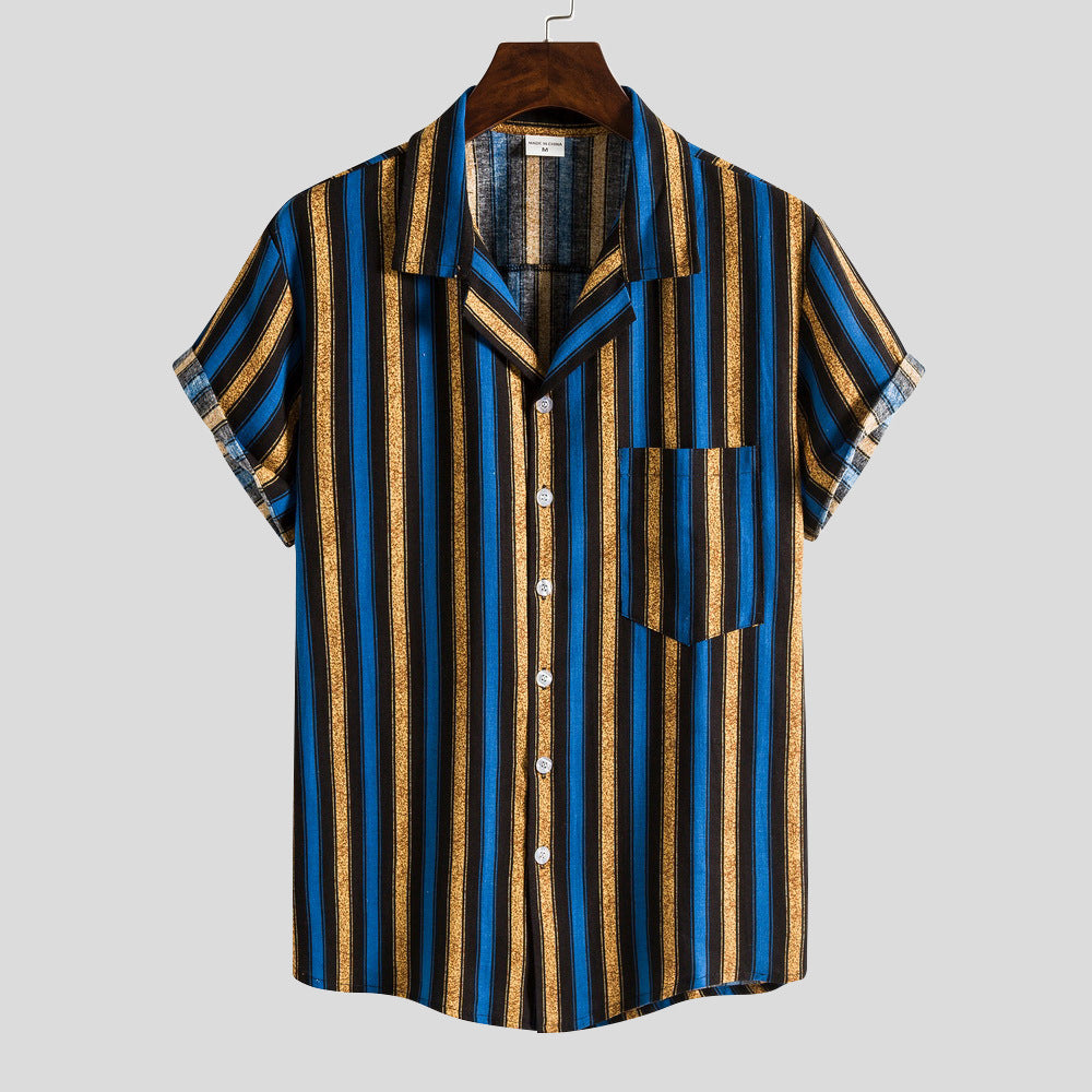 Herren Kurzarmhemd mit buntem Streifenmuster und leichtem Material Heidi-Mode