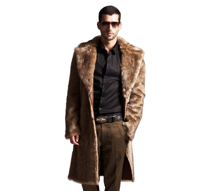 Herren Extravaganter Lammfellmantel mit voluminösem Kunstfellbesatz Heidi-Mode