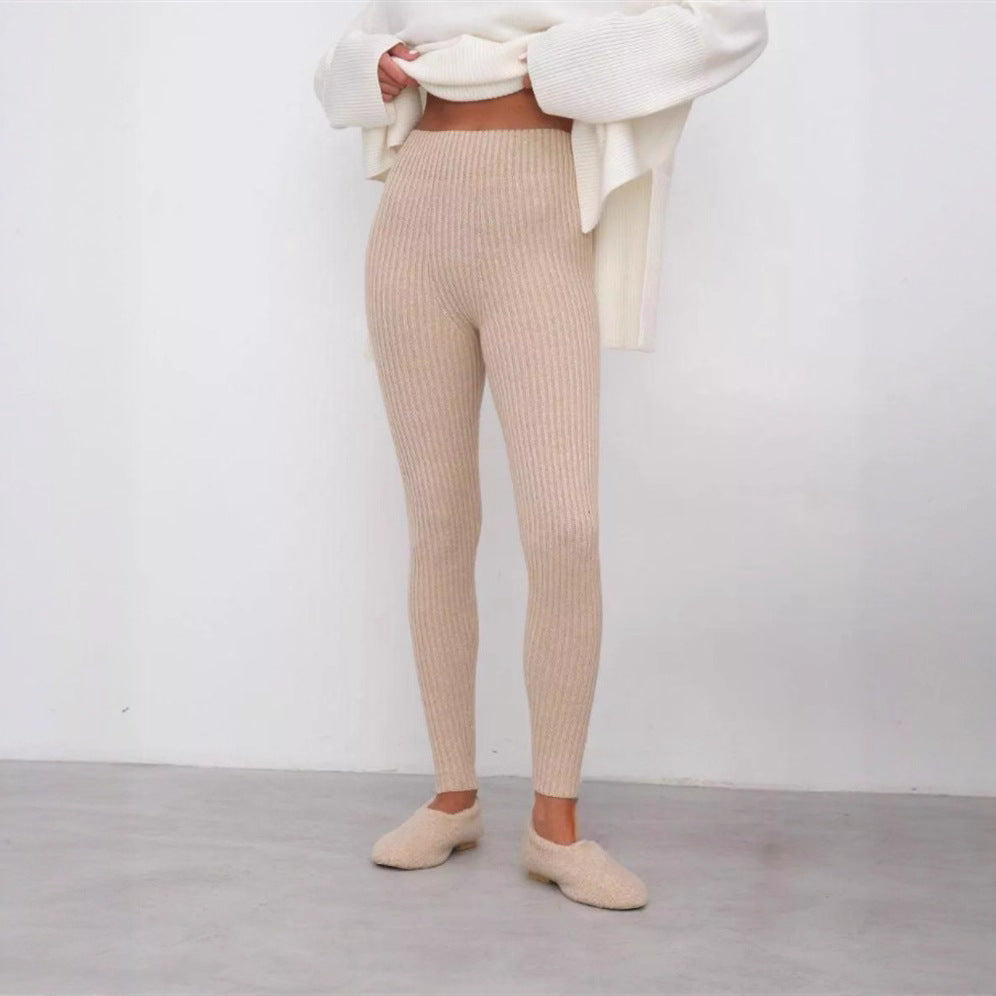 Damen Rippstrick-Leggings mit hohem Bund und feiner Struktur Heidi-Mode