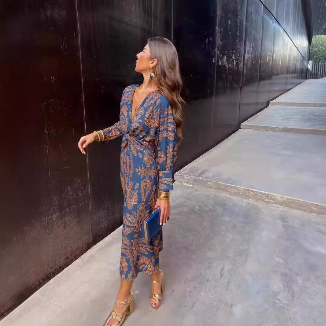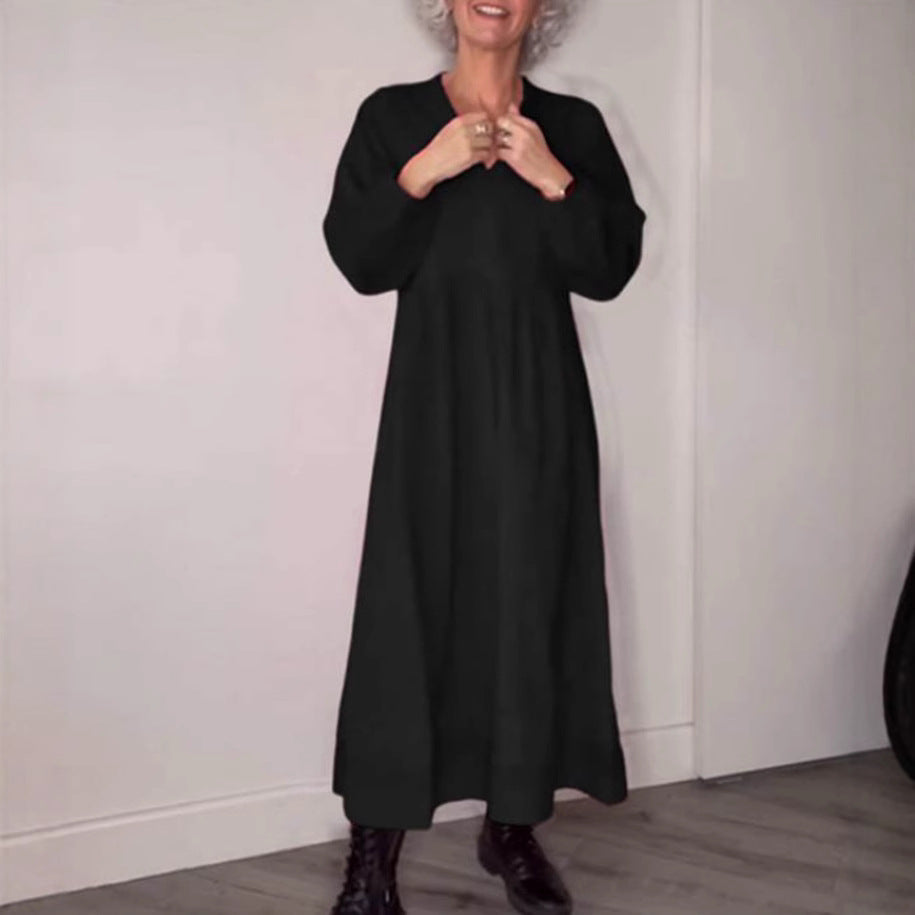 Damen Maxikleid mit elegantem V-Ausschnitt und bequemen langen Ärmeln Heidi-Mode