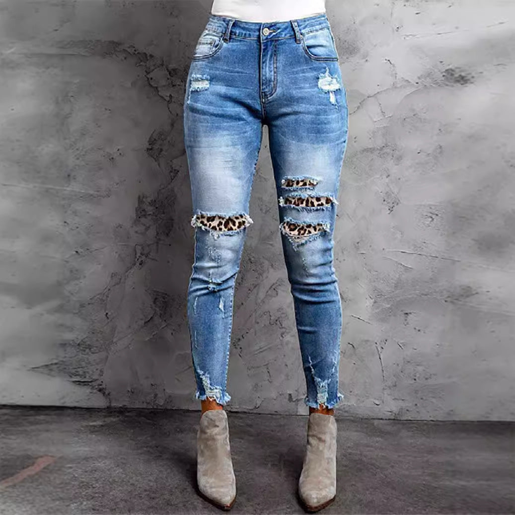 Damen Jeans im modernen Destroyed-Design mit aufregenden Tiermustern Heidi-Mode