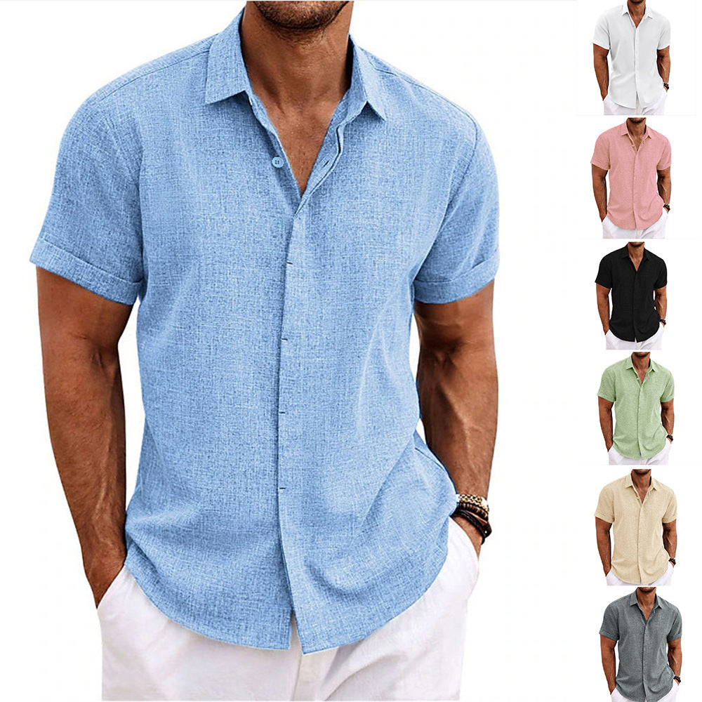 Herren Kurzarm Leinenhemd mit modernem Kragen und luftiger Struktur Heidi-Mode
