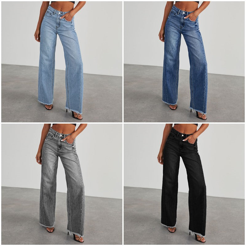 Damen Weit geschnittene Jeans mit trendigem fransigem Saum Heidi-Mode