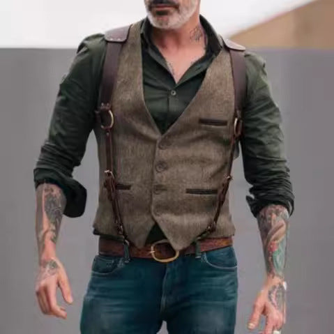 Herren stilvolle Weste aus hochwertigem Kunstleder Heidi-Mode