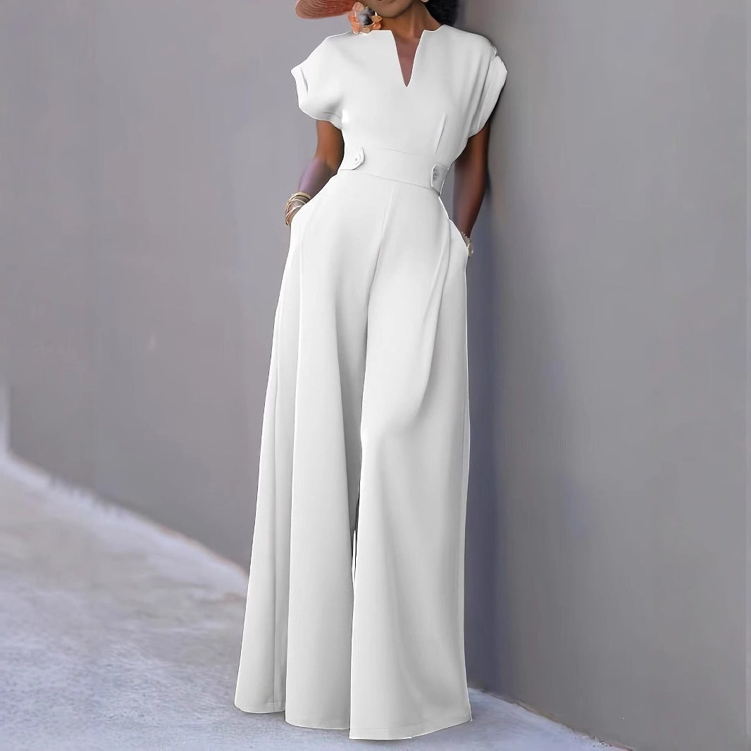 Damen eleganter Jumpsuit mit weitem Bein und praktischen Taschen Heidi-Mode