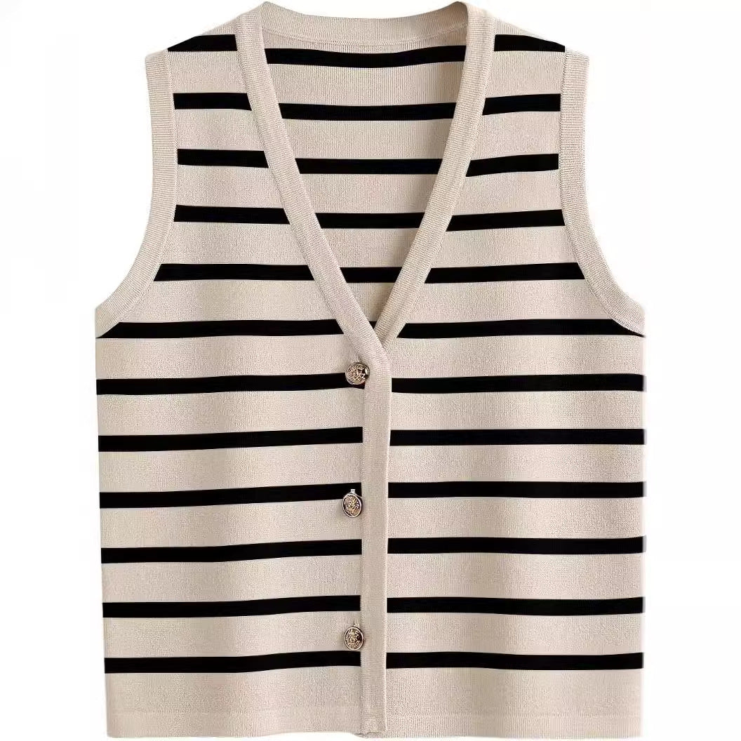 Damen ärmellose Strickweste mit V-Ausschnitt und dekorativen Knöpfen Heidi-Mode