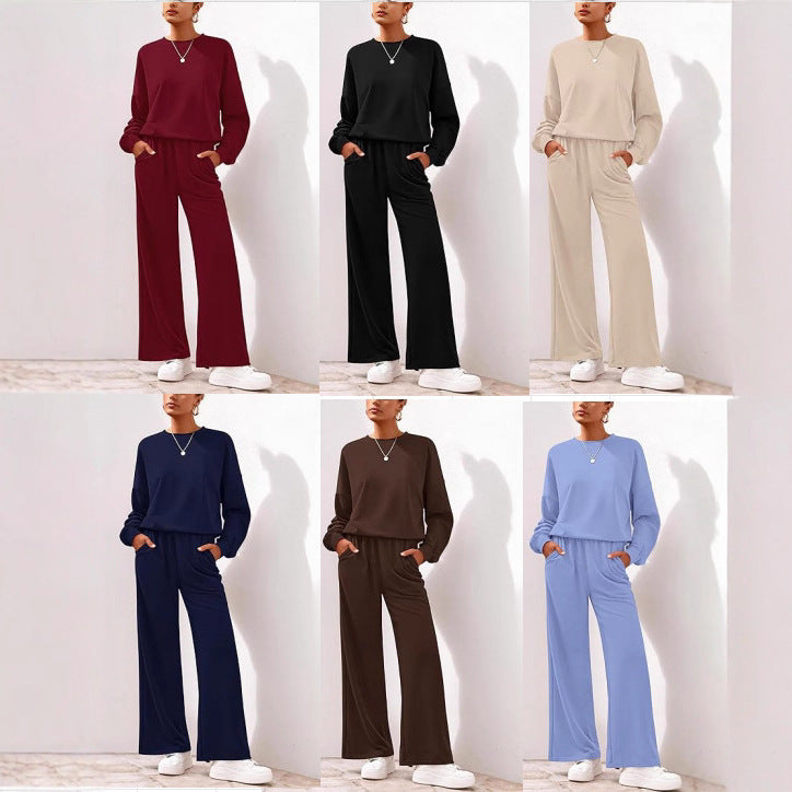 Damen Komfortabler Sweatsuit mit weitem Bein und lässigem Schnitt Heidi-Mode