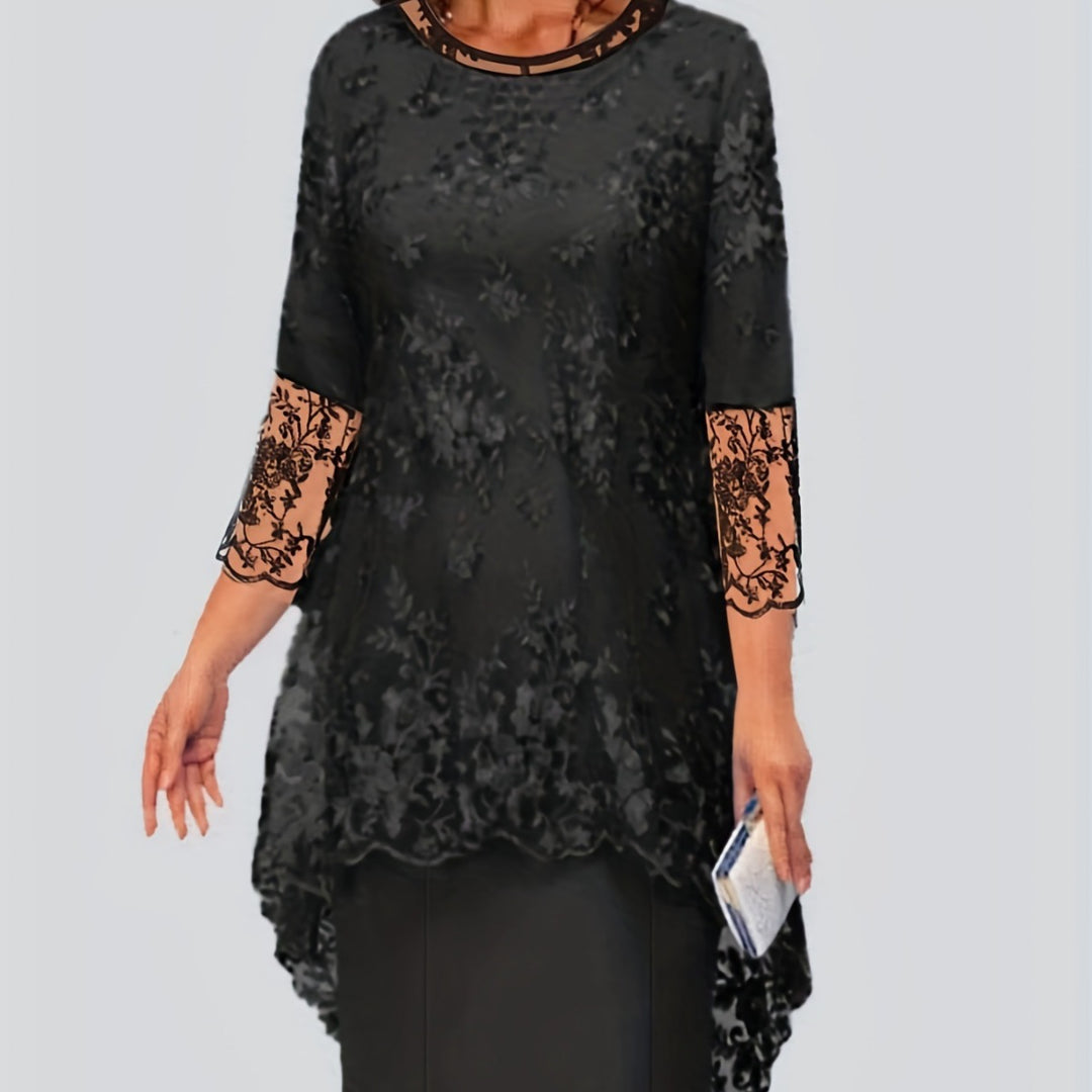 Damen Elegantes Blusen-Kleid mit floralen Spitze-Ärmeln und schwingendem Saum Heidi-Mode