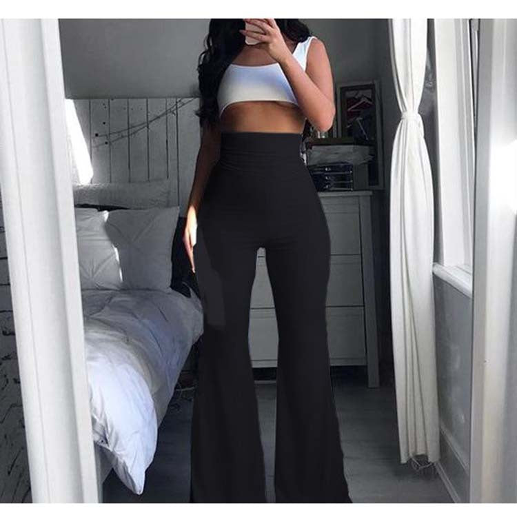 Damen Hochtaillierte Schlaghose mit elastischem Bund und komfortablem Schnitt Heidi-Mode