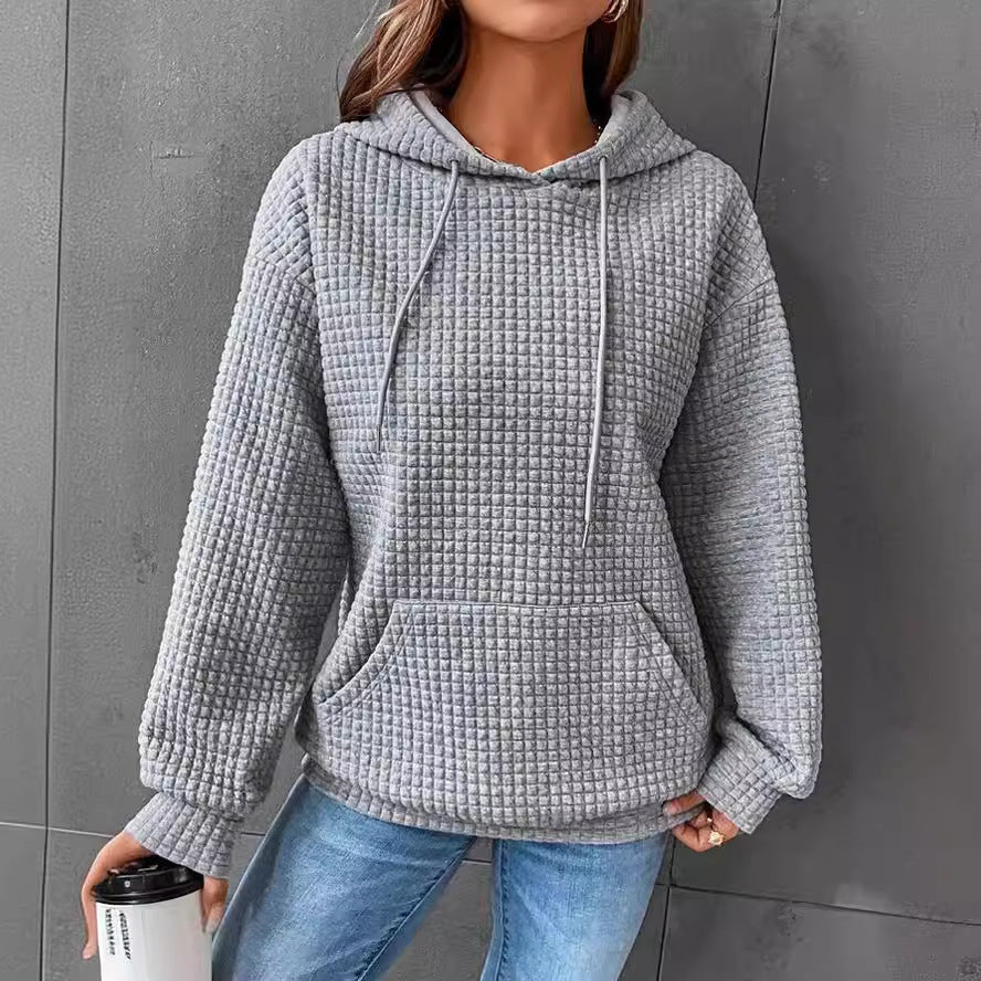 Damen Waffelstruktur Hoodie mit Kängurutasche und lässigem Schnitt Heidi-Mode