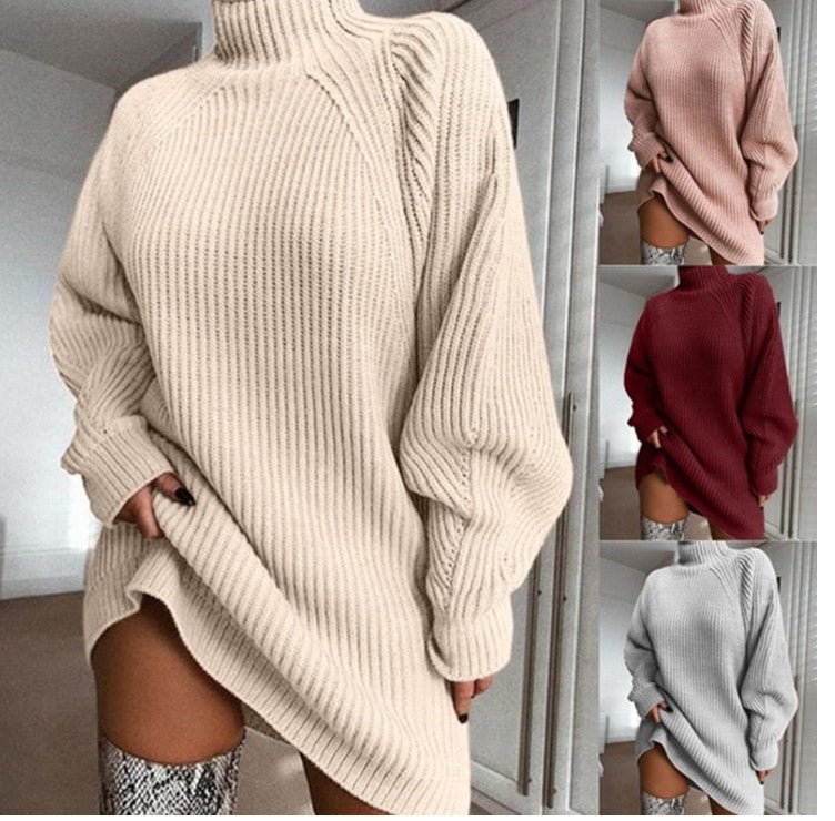 Damen Großer Strickpullover mit hohem Kragen und weiten Ärmel Heidi-Mode