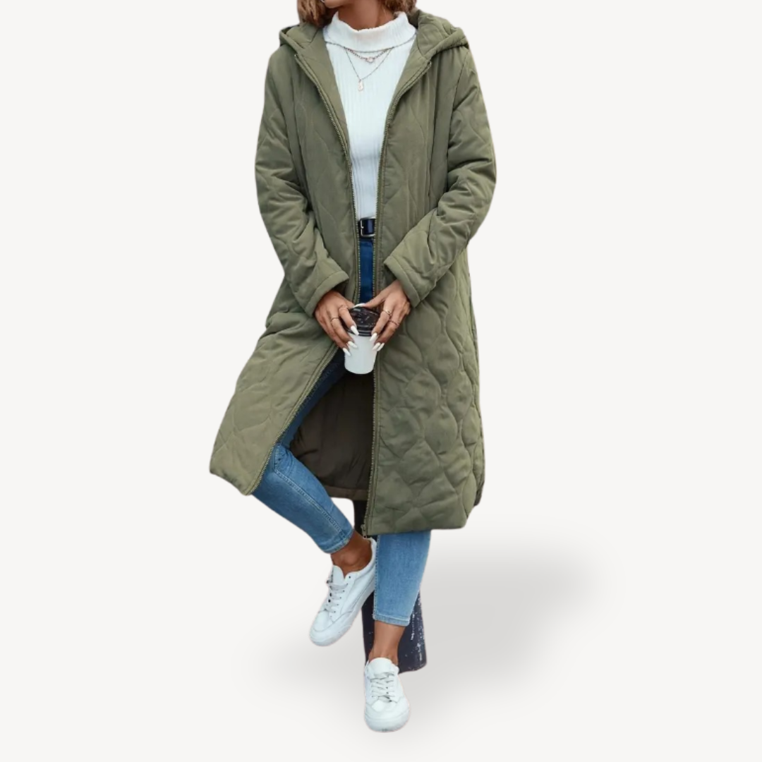 Heidi-Mode | Damen Grüner Gesteppten Kapuzen-Wintermantel