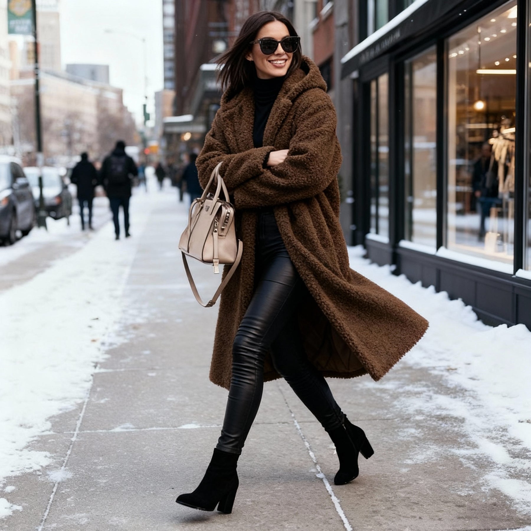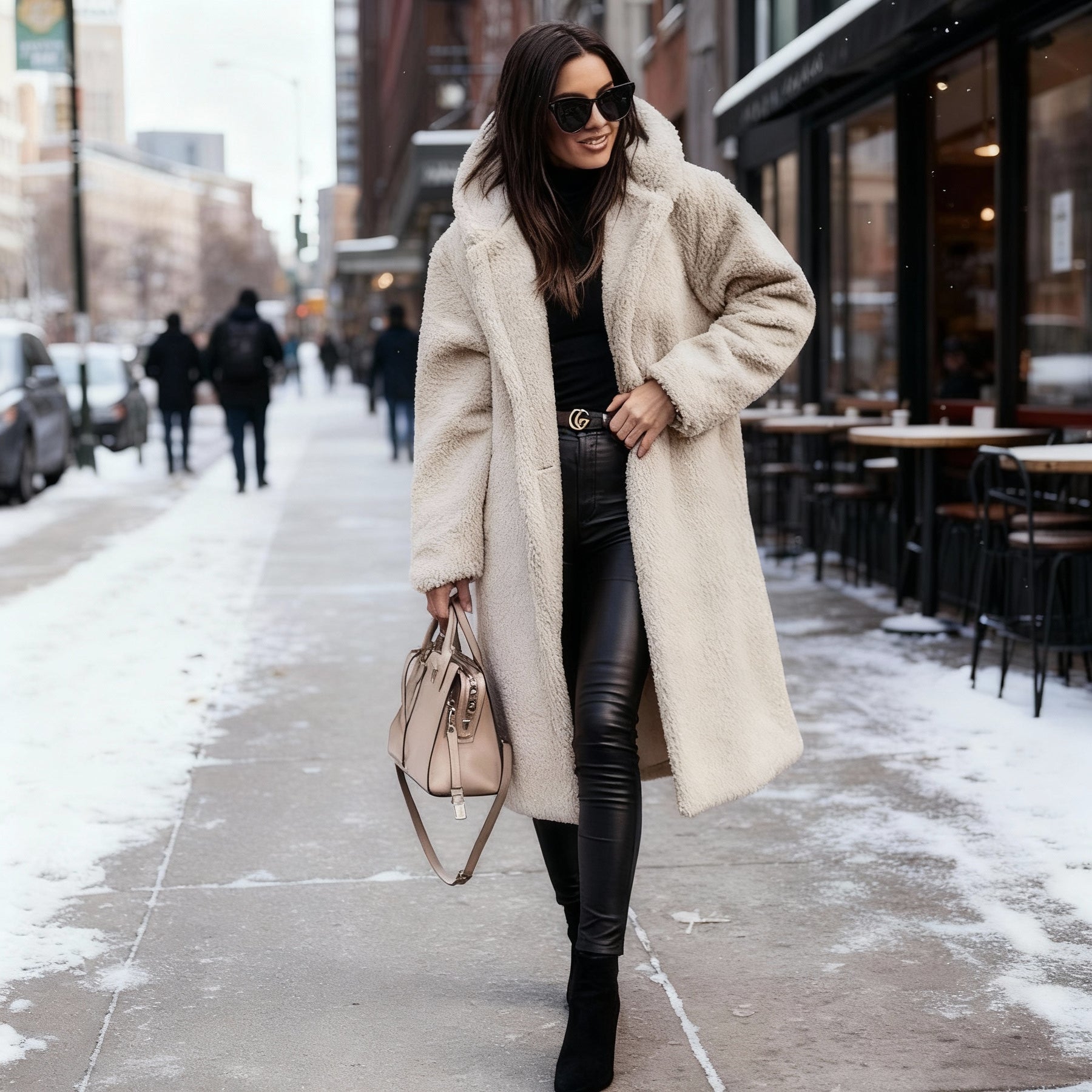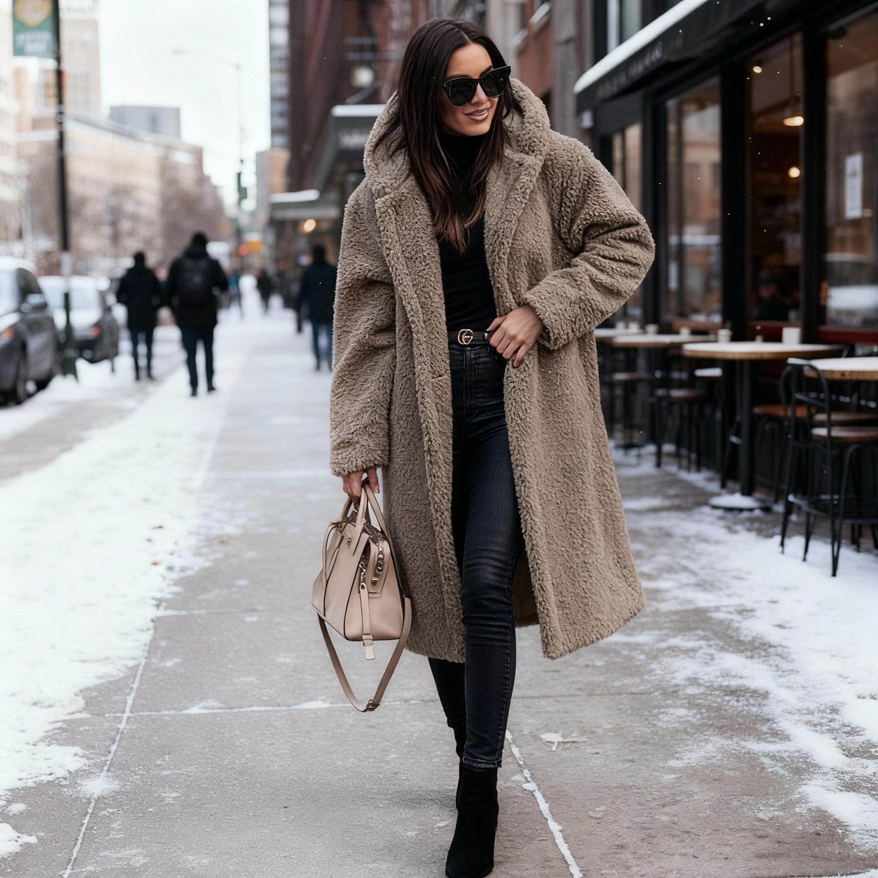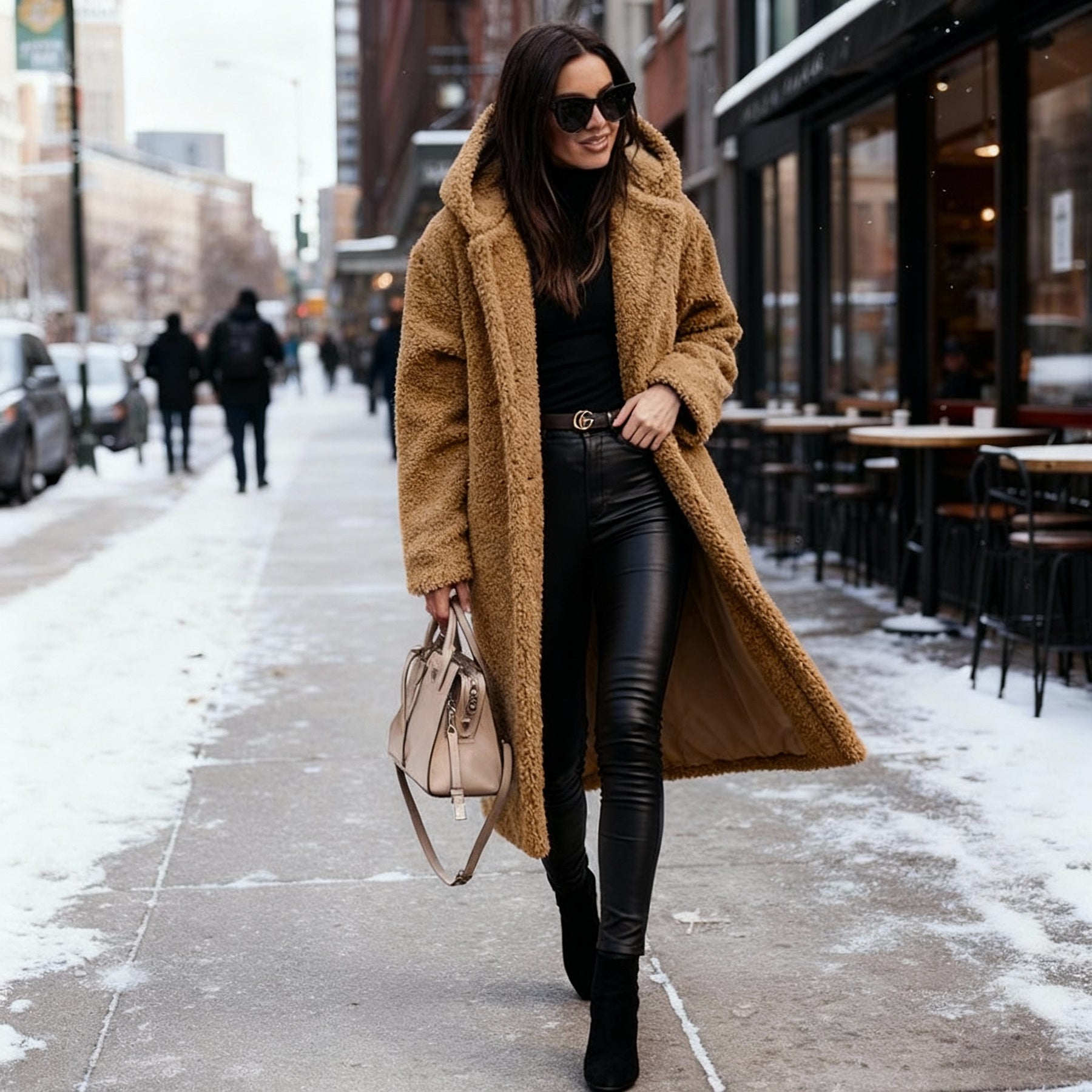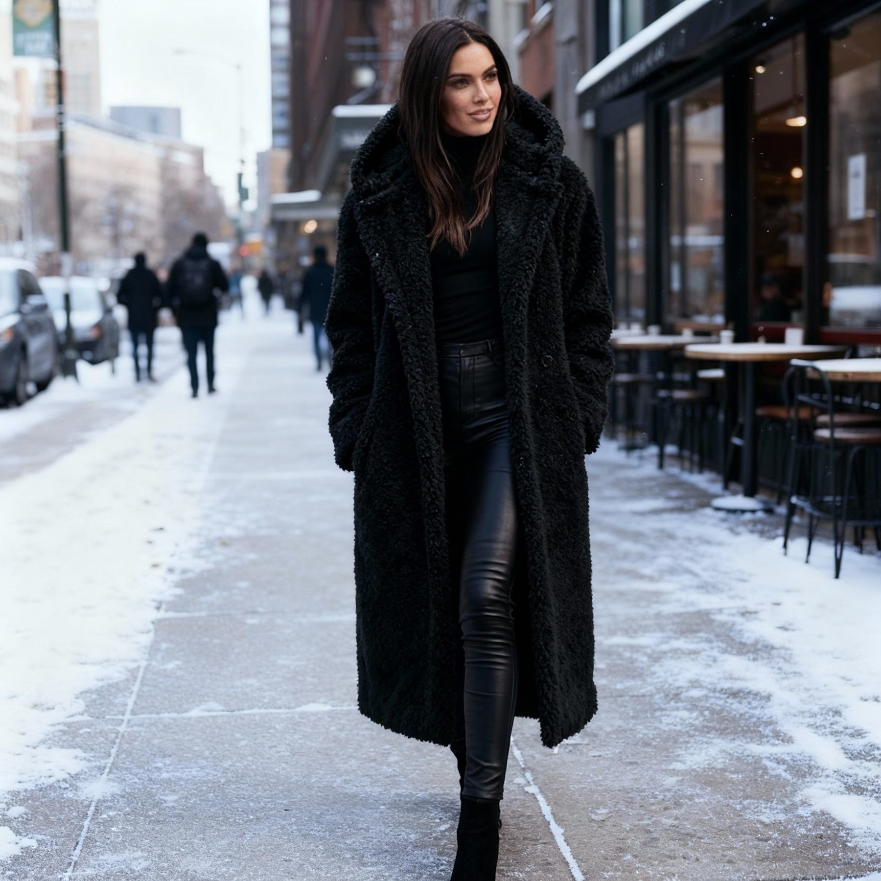 Kuschelweicher Kapuzen Teddy Mantel Damen