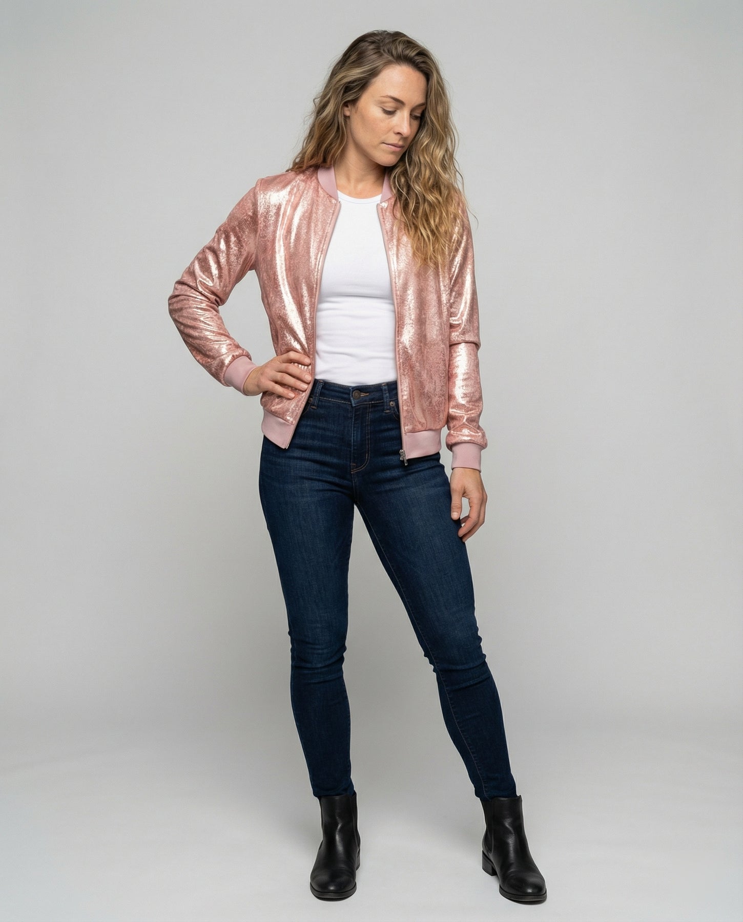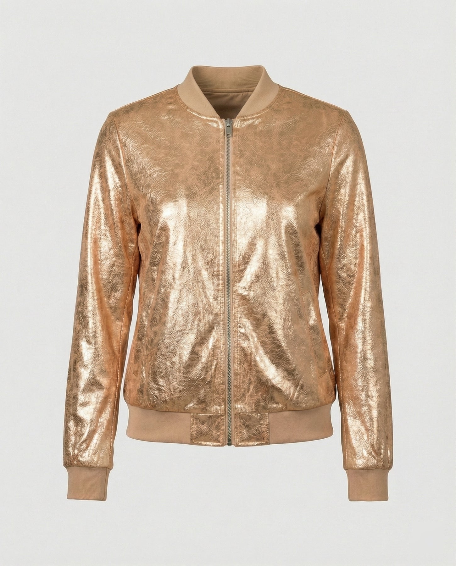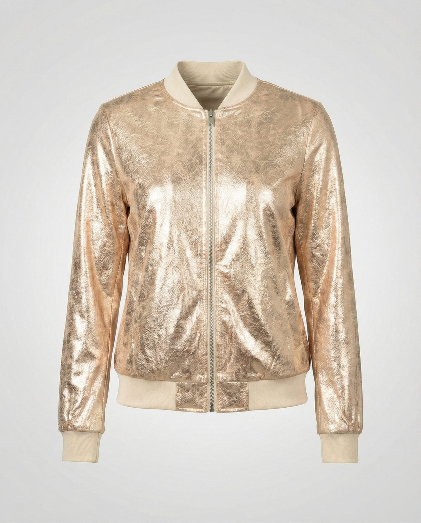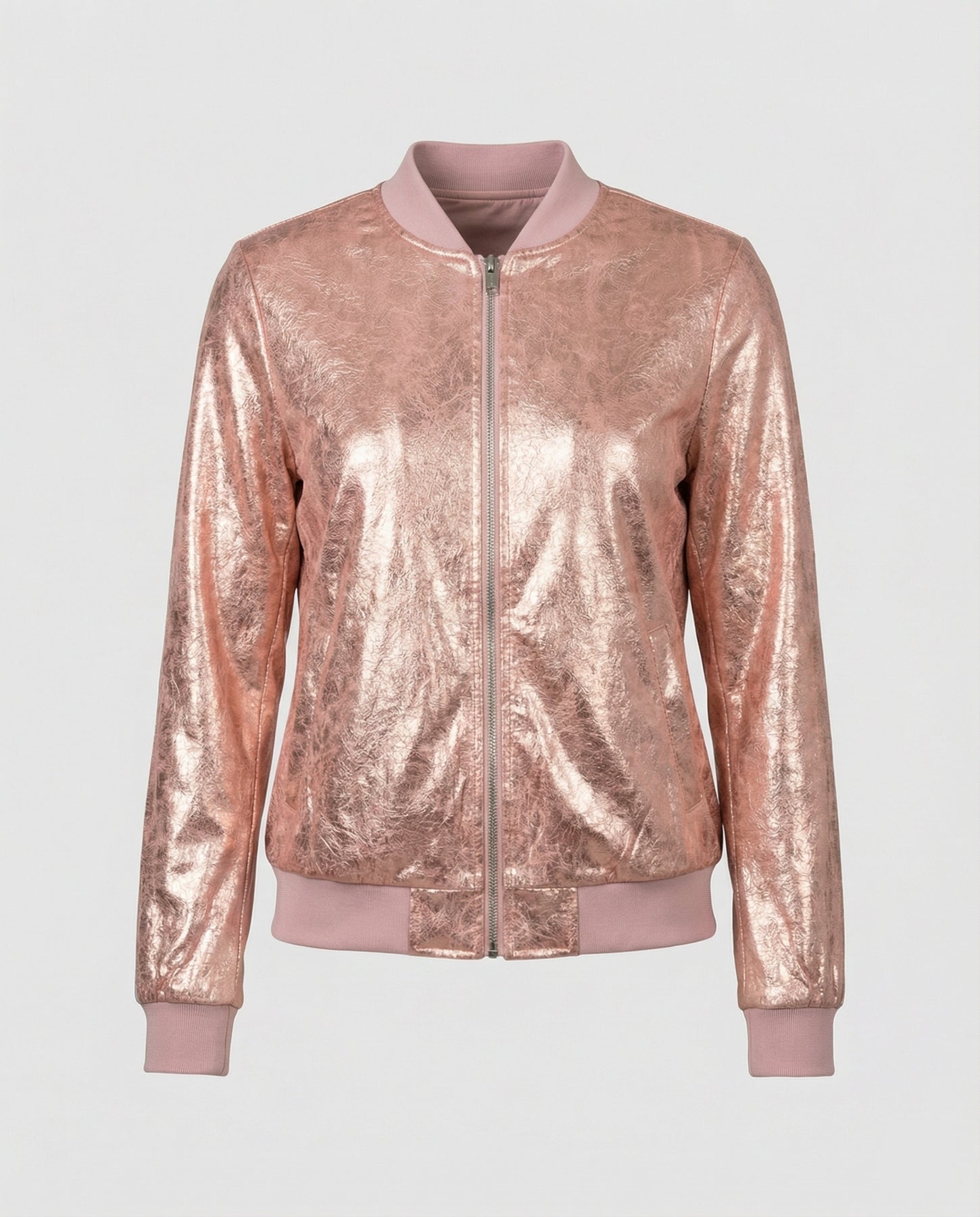 • Glänzende Bomberjacke in Roségold mit klassischem Kragen
