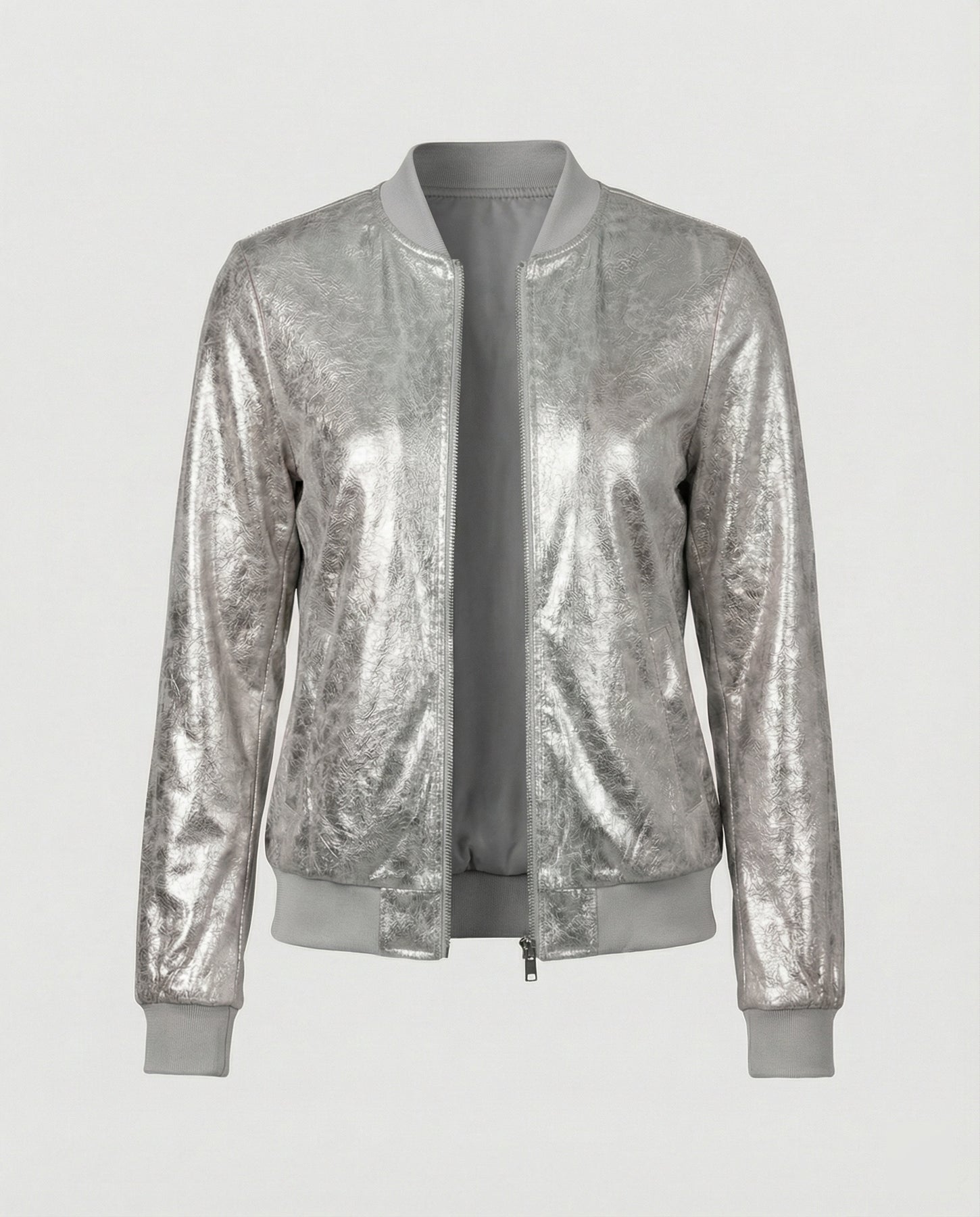 Damen Glänzende Bomberjacke mit Reißverschluss Heidi-Mode
