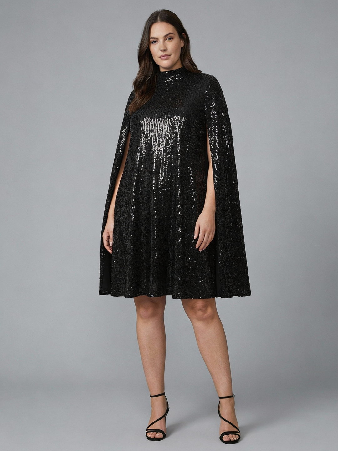 Elegantes Cape Pailletten Kleid | Heidi-Mode