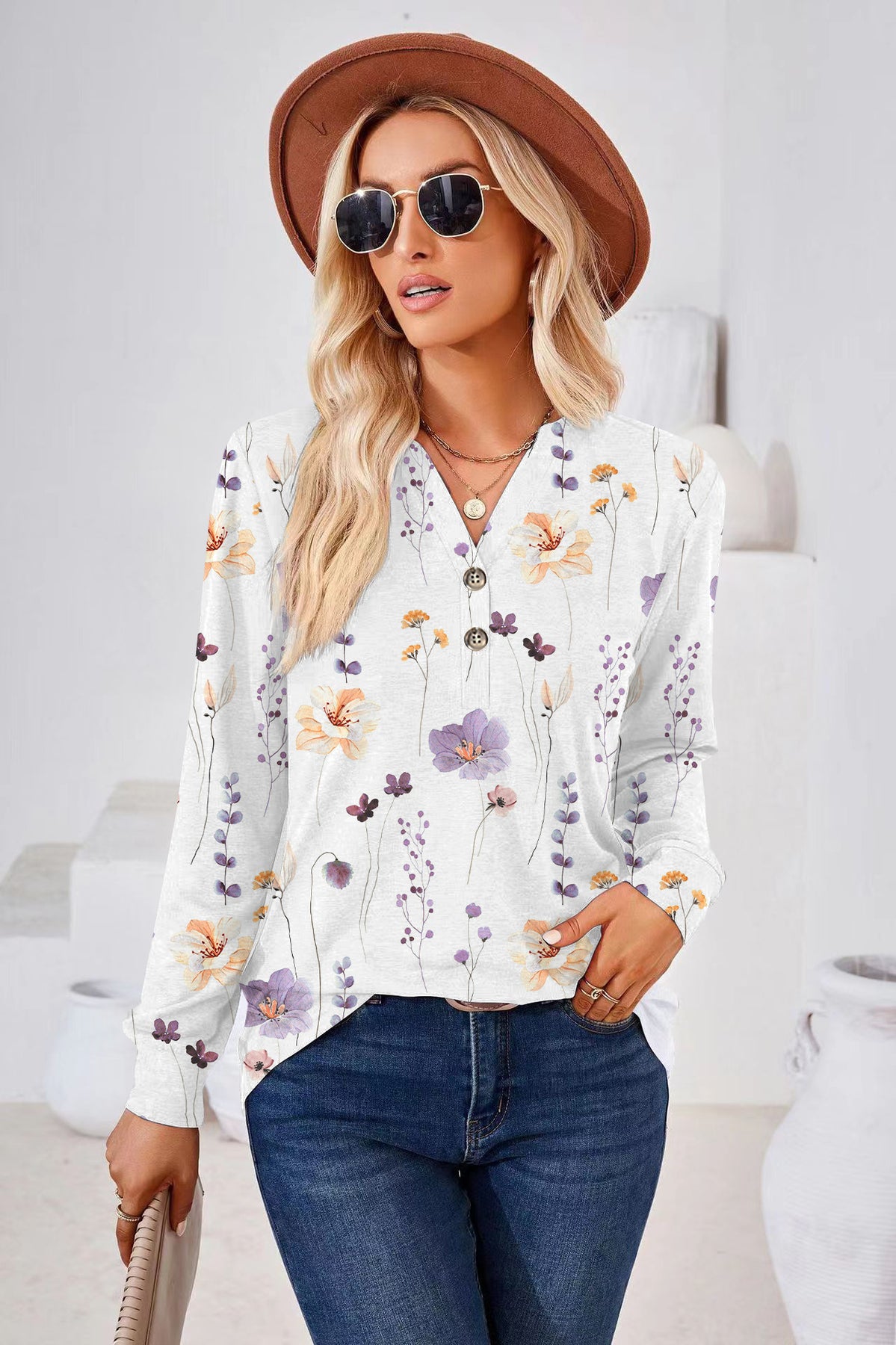 Damen Langarm-Bluse mit floralem Druck und Knopfleiste Heidi-Mode