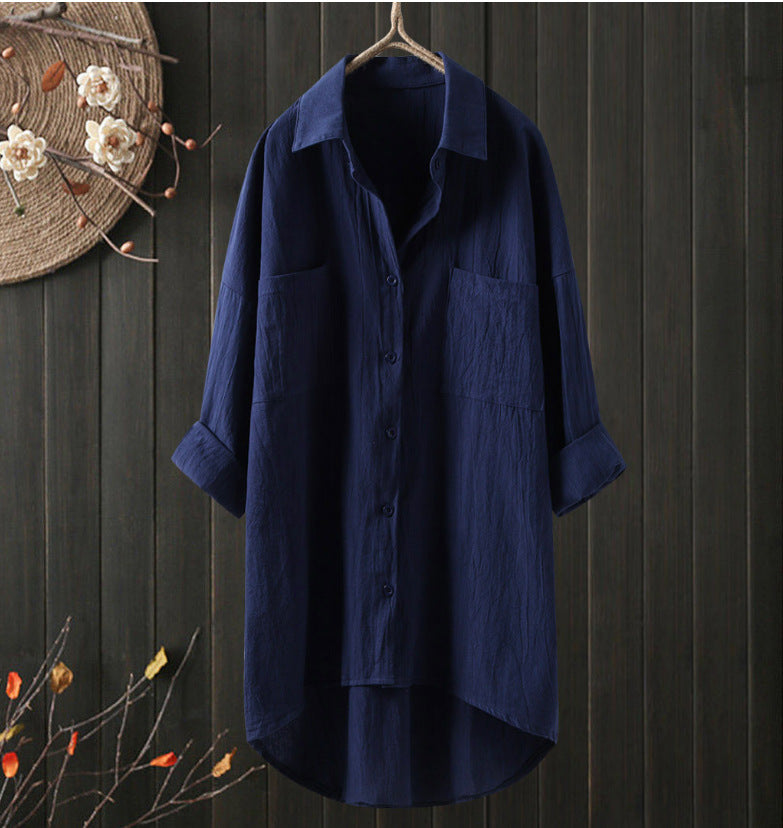 Entdecken Sie die Damen lässige Hemdbluse mit aufgesetzten Taschen und langen Ärmeln von Heidi-Mode, die perfekt für entspannte Freizeitlooks geeignet ist. Diese Bluse vereint Stil und Komfort mit einem eleganten, legeren Schnitt.