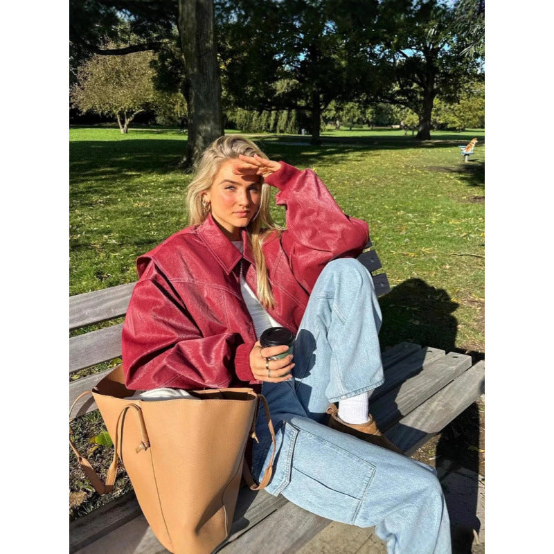 Damen Übergroße Fake-Leder Bomberjacke Heidi-Mode