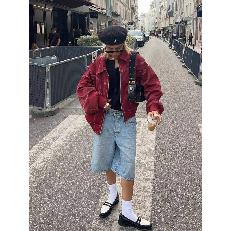 • Stylishes Design: Verfügt über auffällige Nähte und einen modernen Reißverschluss, der der lässigen Ästhetik Eleganz verleiht.
