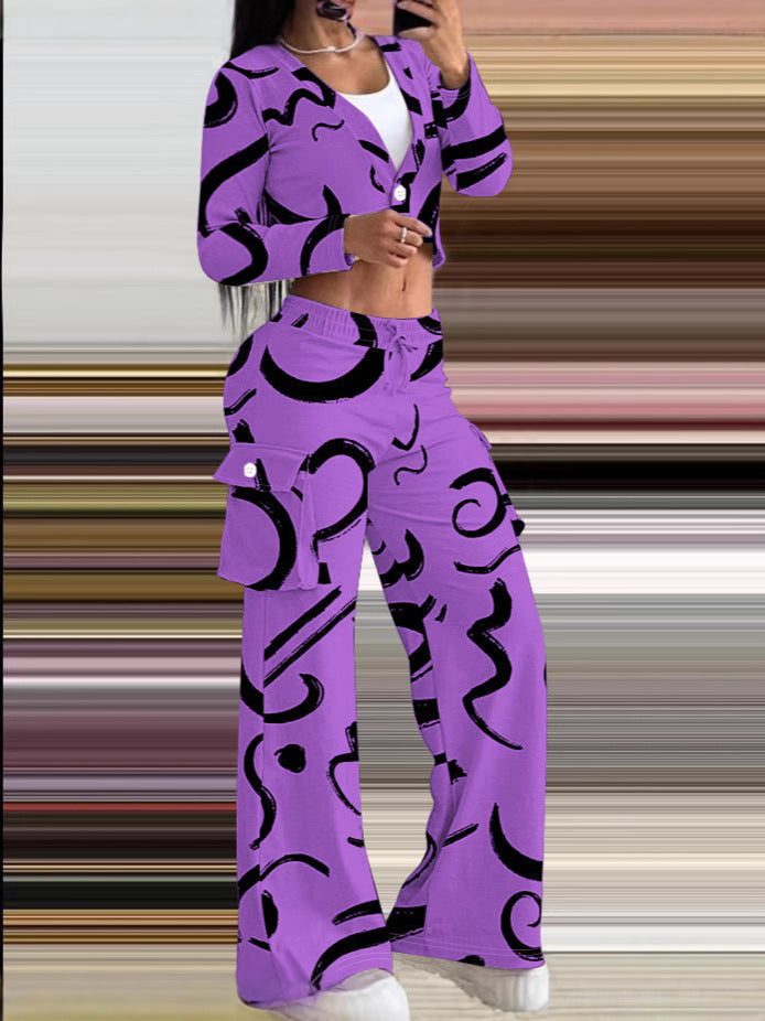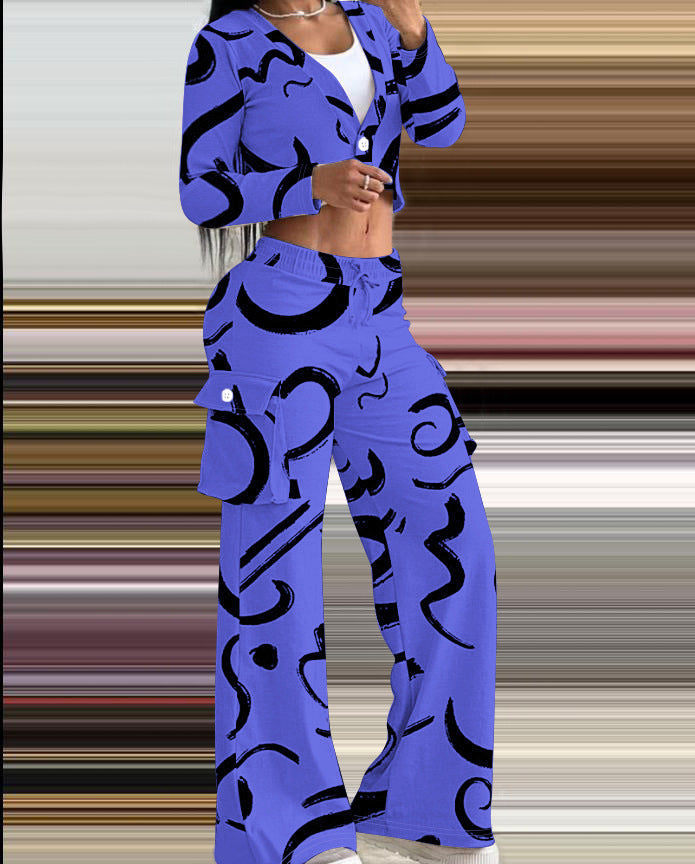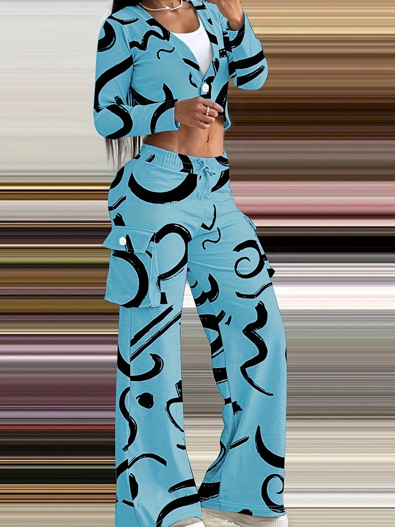 Damen Sportliches Zweiteiliges Set mit abstraktem Muster Heidi-Mode