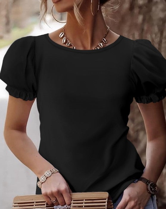 Heidi-Mode | Elegantes Puffärmel-T-Shirt mit Spitzenrücken