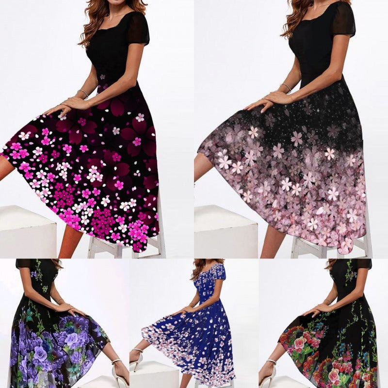 Damen Elegantes Midi-Kleid mit floralem Druck und schwingendem Saum Heidi-Mode