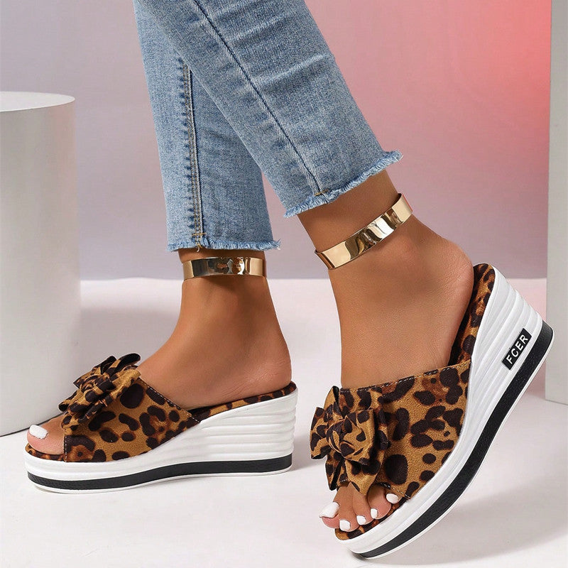 Damen Plateausandalen mit modischer Schleifenapplikation und komfortabler Sohle Heidi-Mode