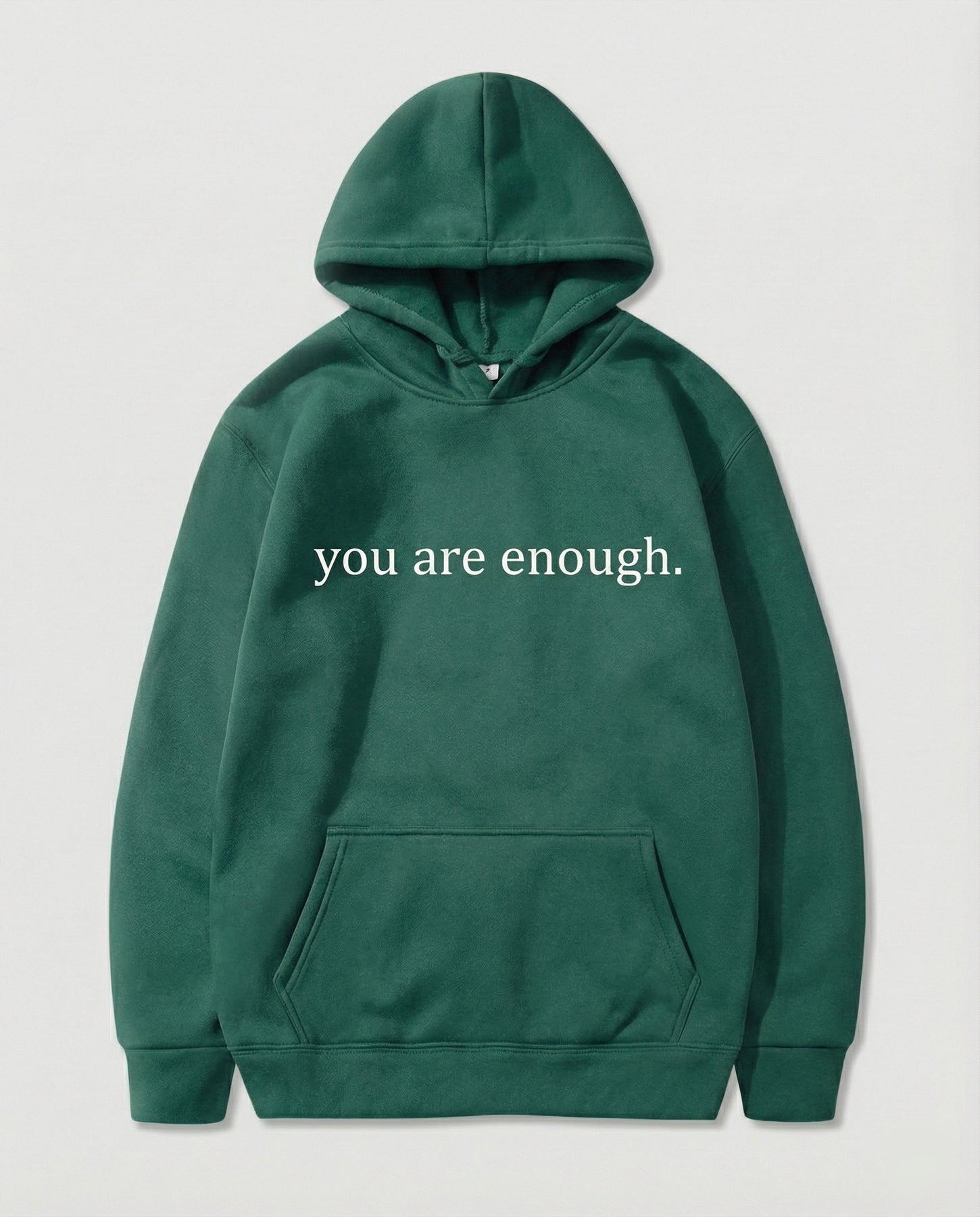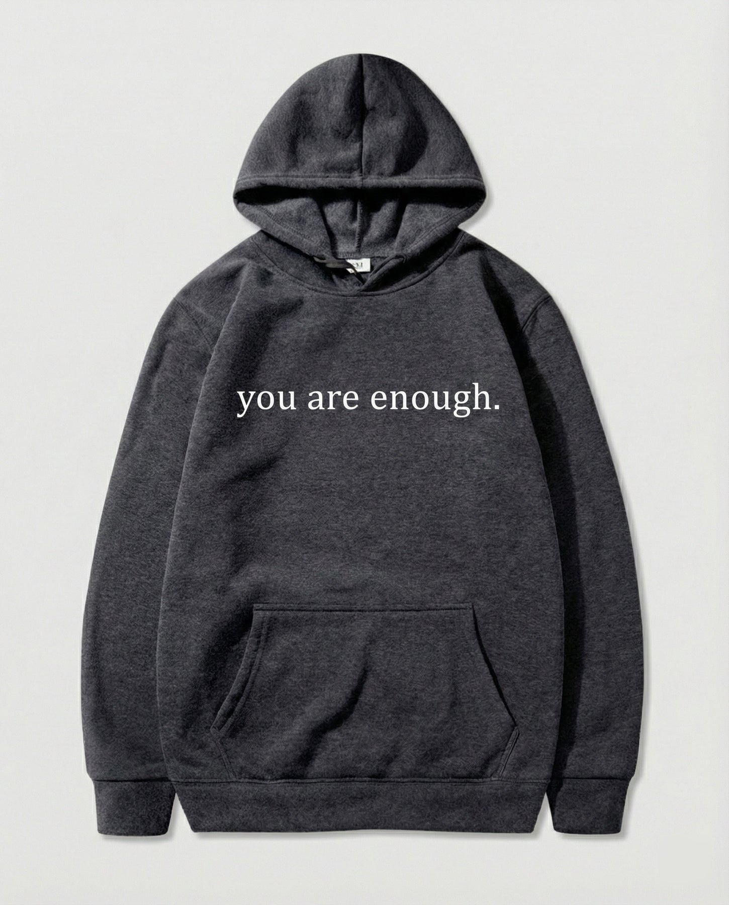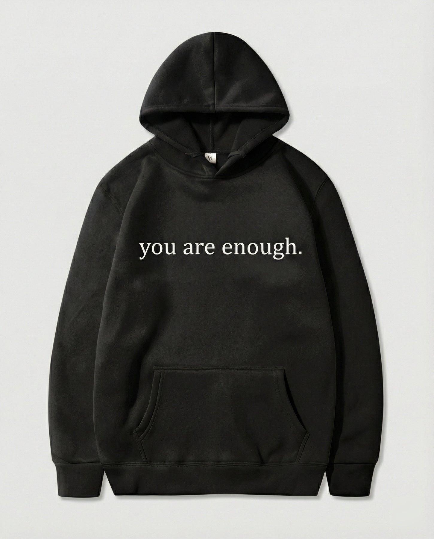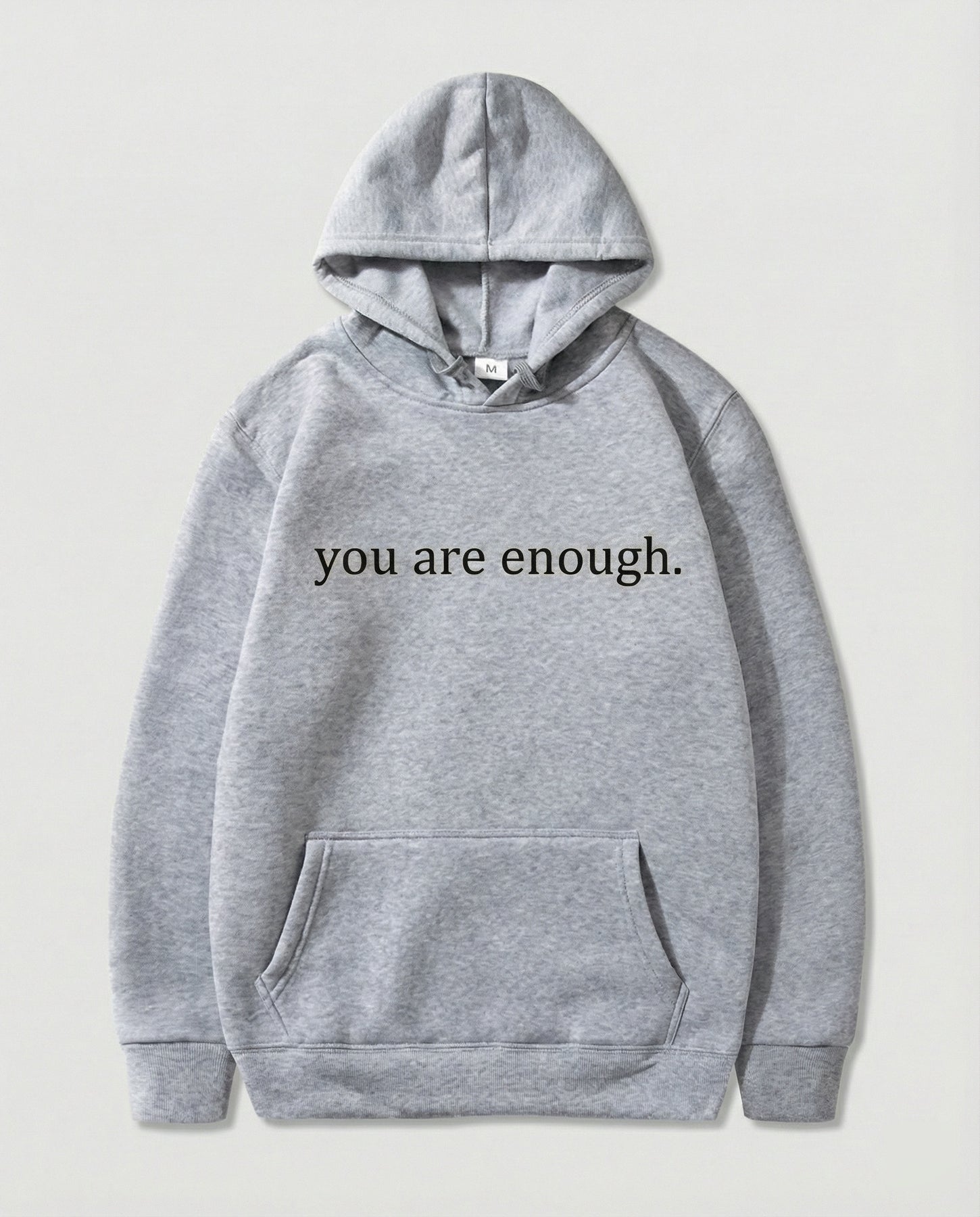Der Hoodie mit der Aufschrift "Du bist genug" geht über Mode hinaus; er ist ein Symbol für Stärkung und Mitgefühl. Jeder Hoodie trägt eine inspirierende Botschaft der Widerstandsfähigkeit und ist perfekt für diejenigen, die danach streben, etwas Positives zu bewirken und Freundlichkeit in ihrem Alltag zu verbreiten.