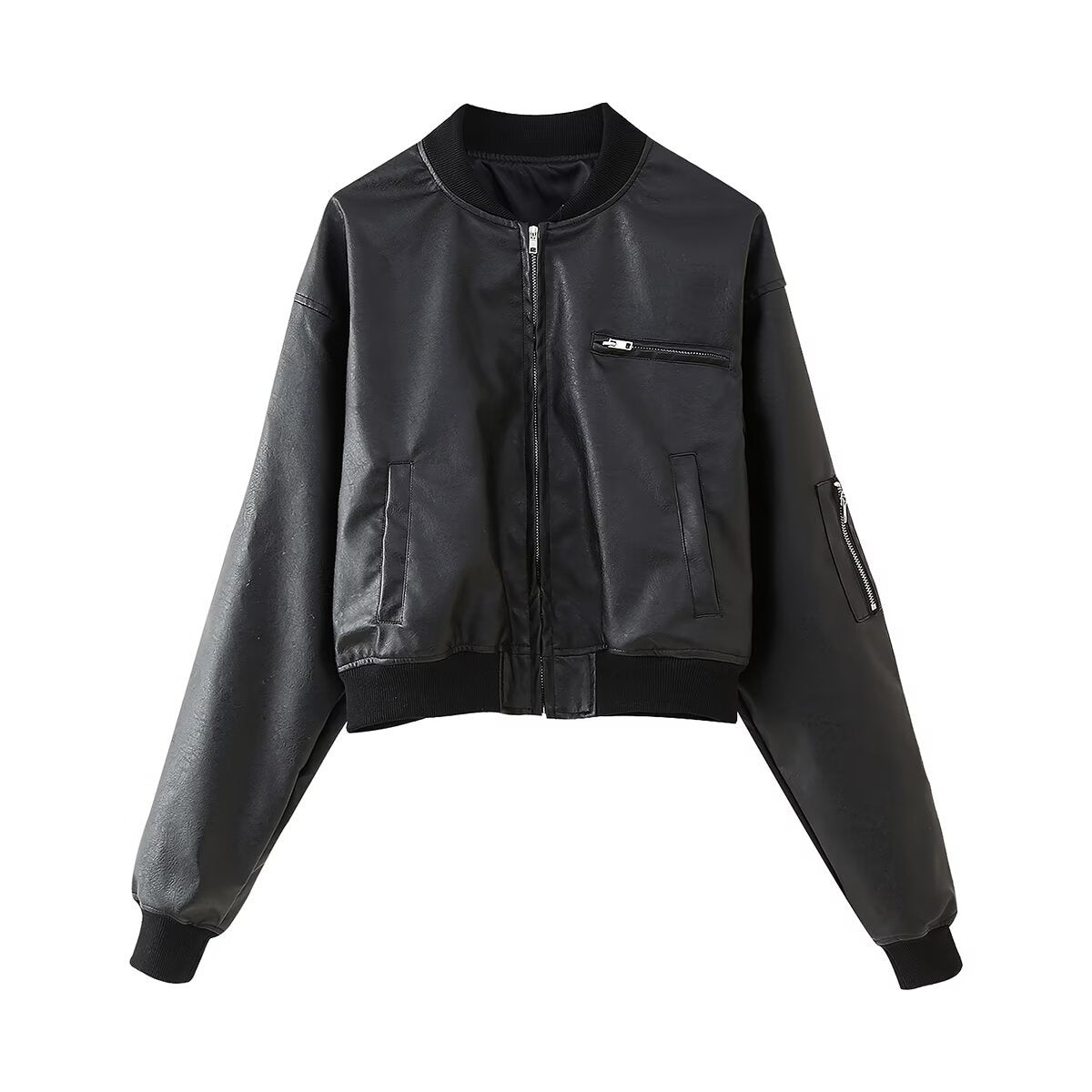 Damen Bikerjacke aus hochwertigem Kunstleder mit praktischen Taschen und elastischem Bündchen Heidi-Mode