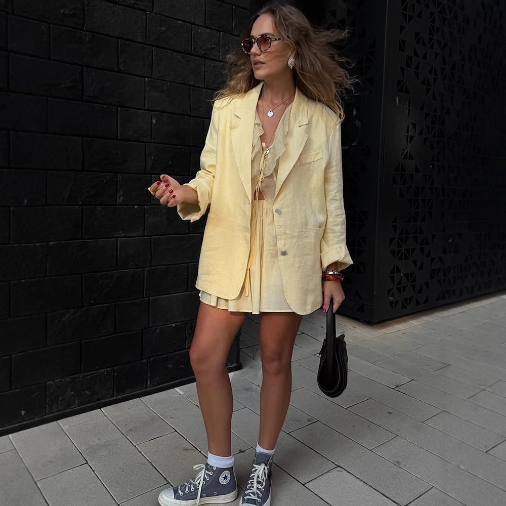 • Vielseitige Styling-Optionen: Tragen Sie ihn offen über einem schicken Oberteil oder schließen Sie ihn für einen formaleren Look – dieser Blazer passt sich Ihrem Stil an.