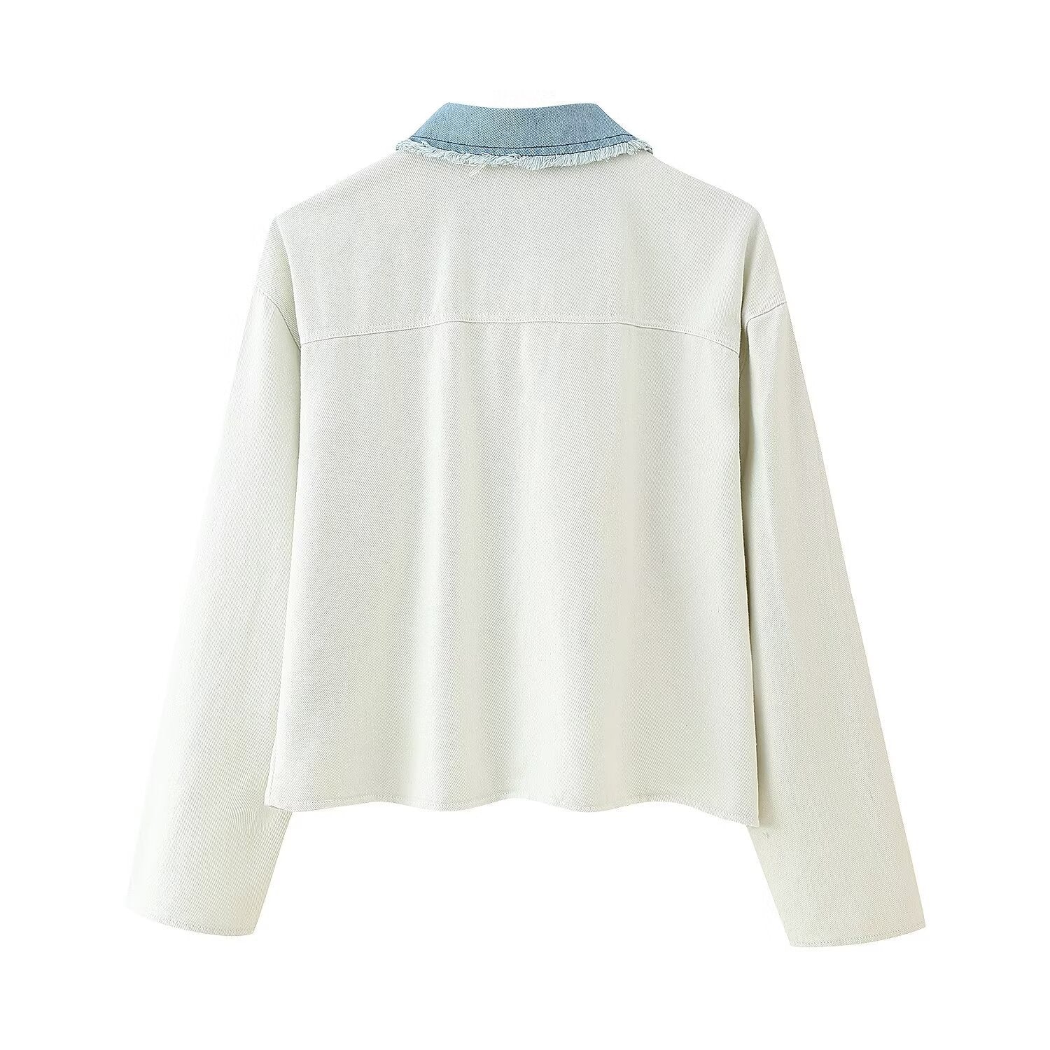 Damen cropped Denimjacke mit kontrastierenden Taschen und fransigem Saum Heidi-Mode