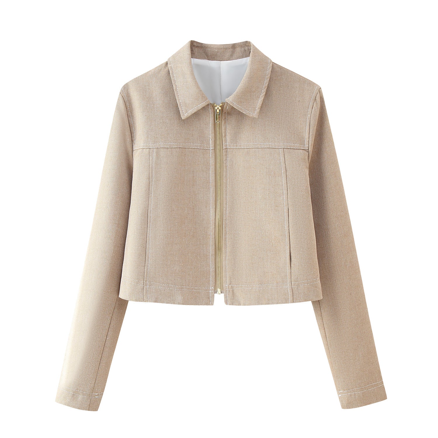Damen cropped Jacke aus hochwertigem Stoff mit elegantem Reißverschluss Heidi-Mode