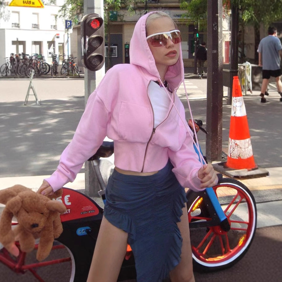 Entdecken Sie unsere trendige Damen Cropped Kapuzenjacke, die perfekt für sportliche Outfits und lässige Freizeitlook geeignet ist. Die Jacke vereint optimalen Komfort mit einem modernen Design und hinterlässt einen stilvollen Eindruck.