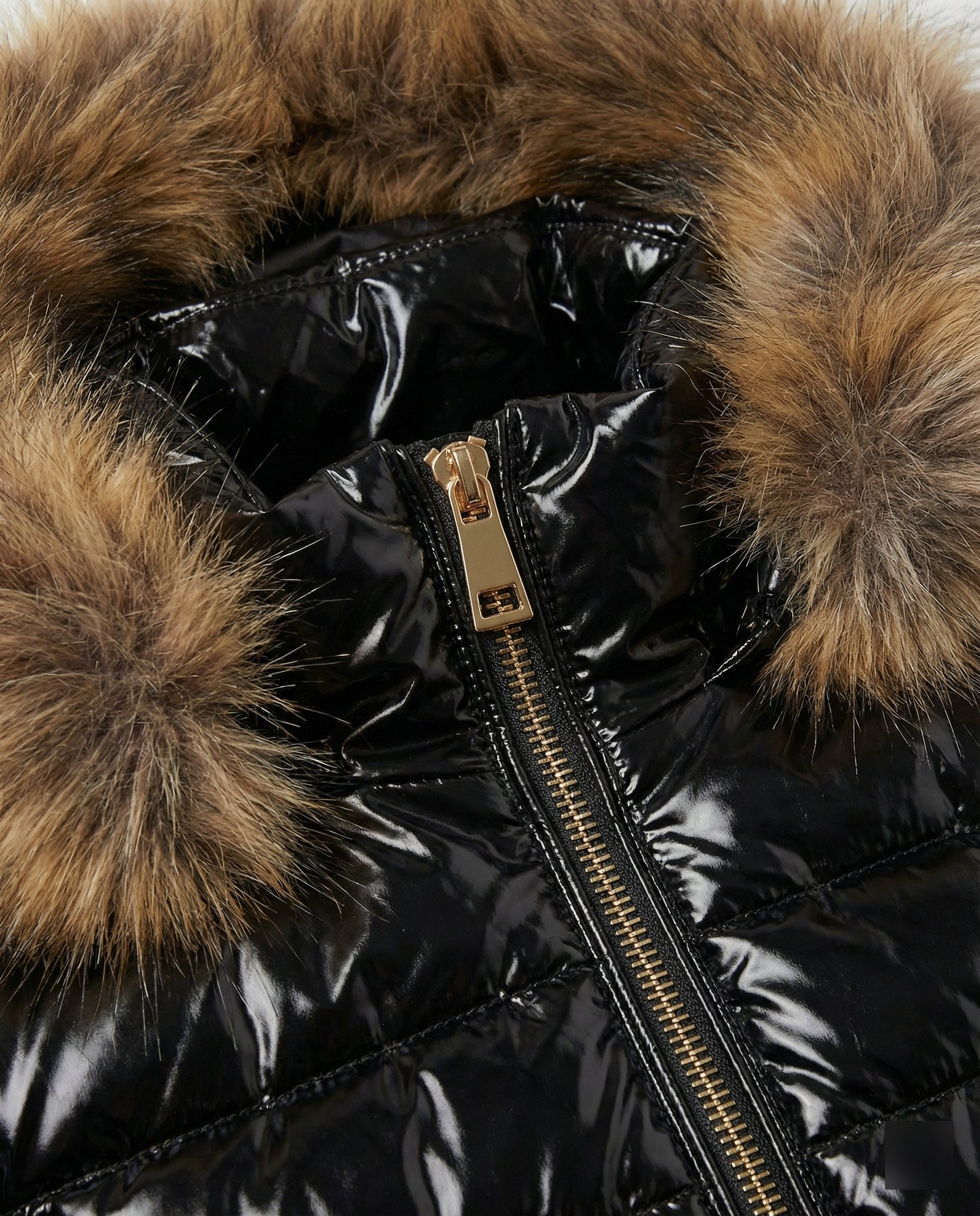 - Elegantes Design: Zeitloser Look mit luxuriöser Pelzkapuze.