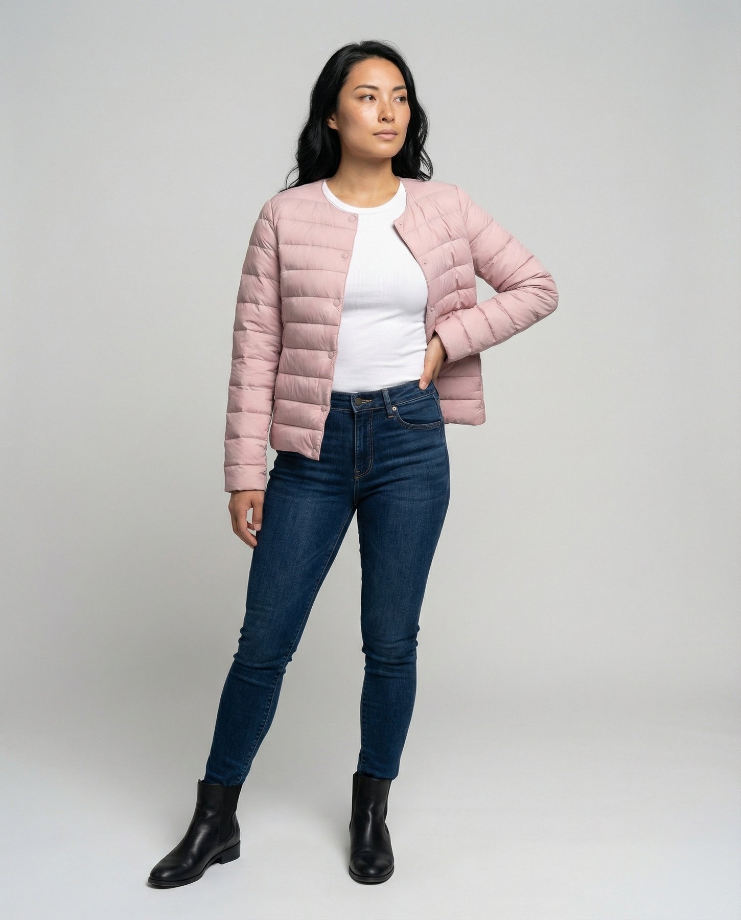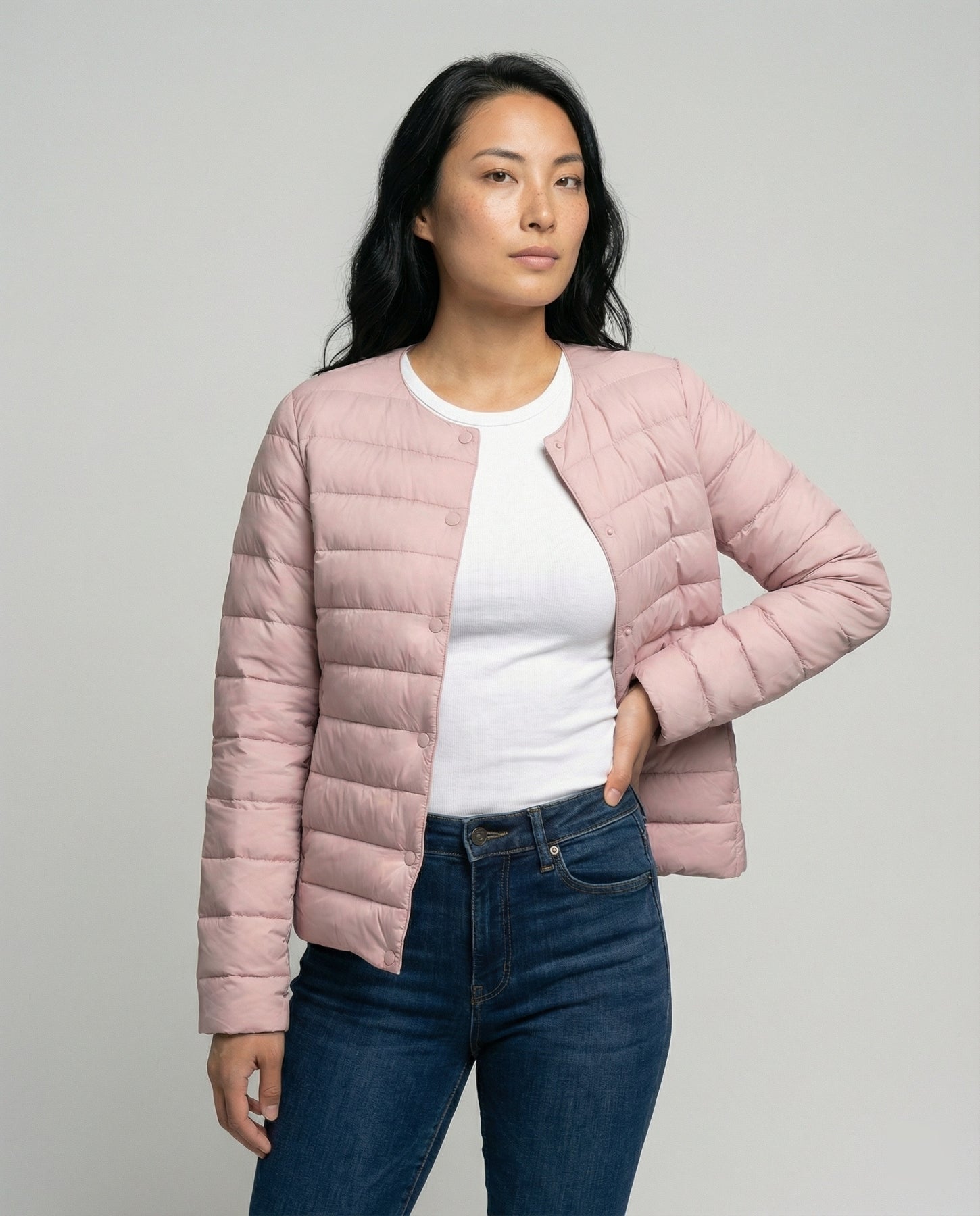 Die Ultra Thin Jacke für Damen bietet zuverlässige Wärme, ohne dabei schwer oder auftragend zu wirken. Sie wurde für Frauen entworfen, die Komfort und Stil gleichermaßen schätzen und auch an kühlen Tagen nicht auf ein gepflegtes Erscheinungsbild verzichten möchten. Dank ihres besonders leichten Aufbaus eignet sie sich ideal als zusätzliche Wärmeschicht für Alltag und Freizeit.