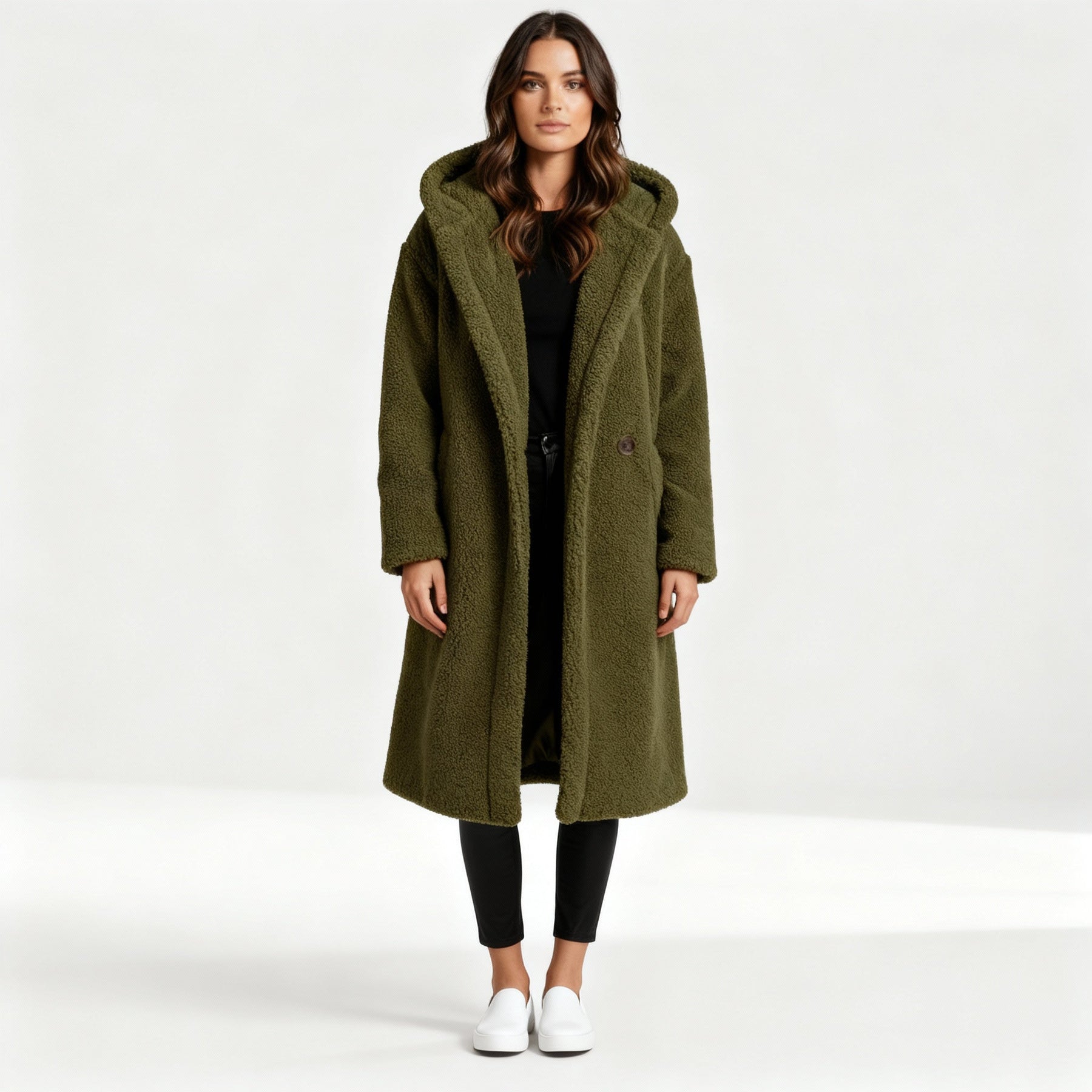 Teddy Mantel Damen Komfort Langer Mantel Mit Kapuze