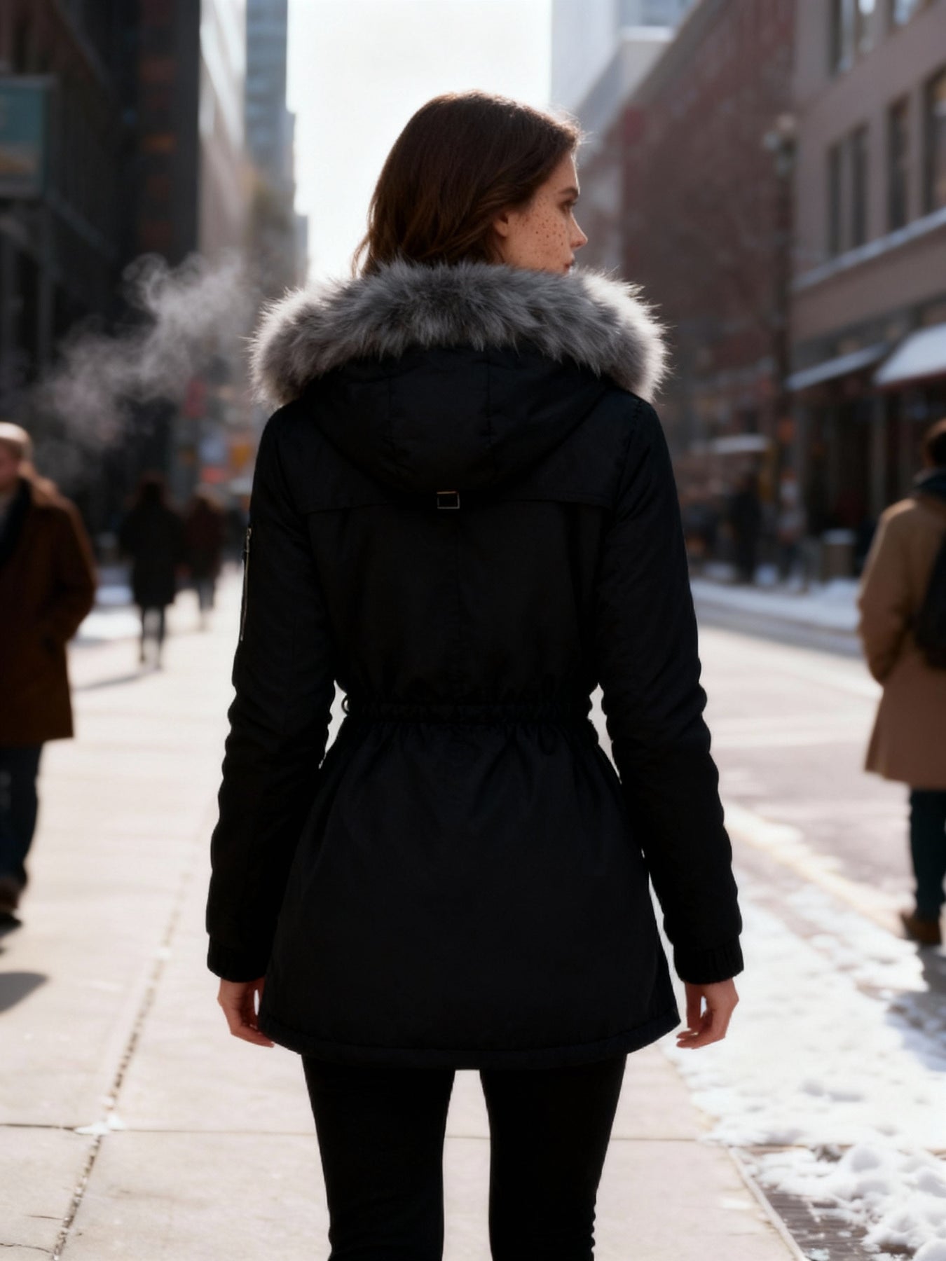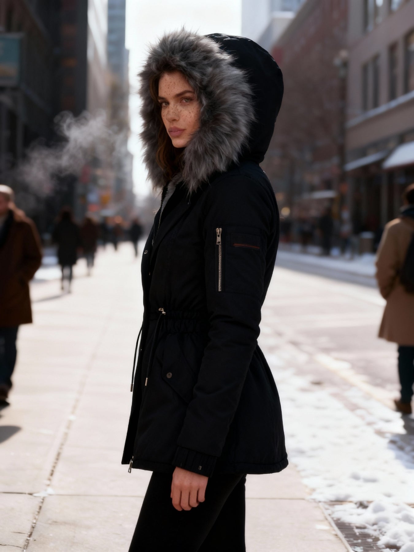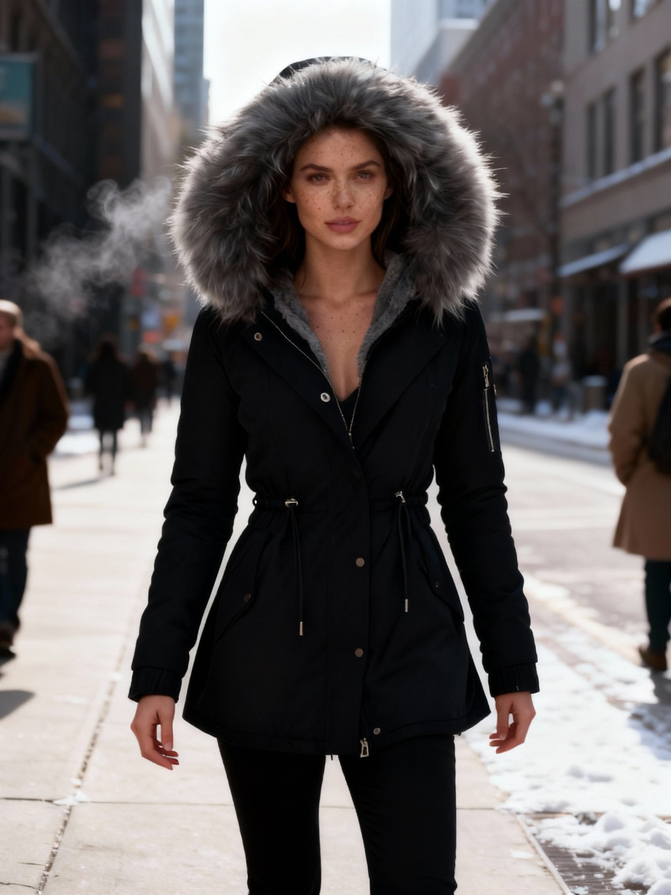 Sein edles Design macht ihn zum idealen Mantel für Frauen, die Wärme und Stil in einem einzigen Kleidungsstück suchen.