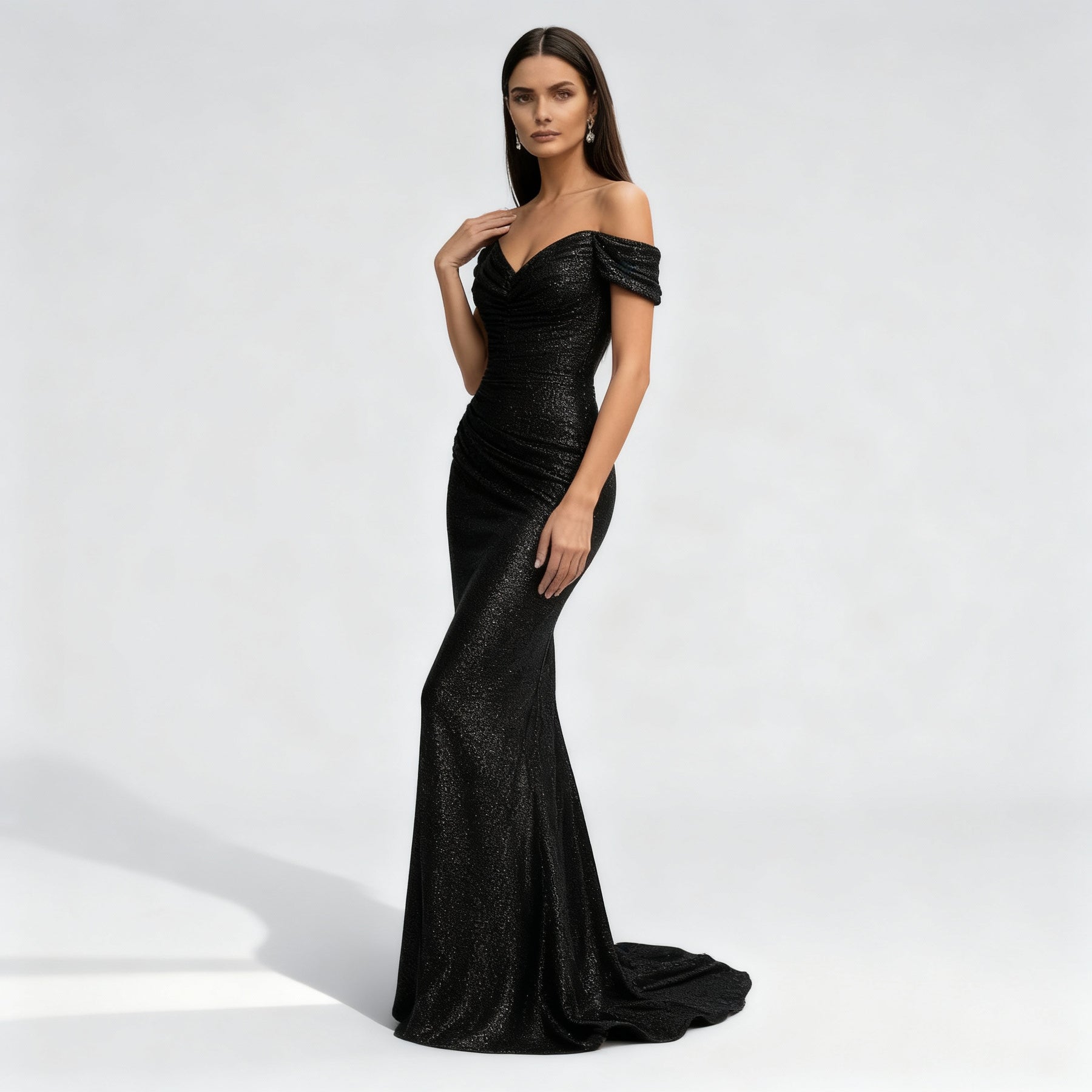 Schimmerndes Schulterfreies Pailletten Damen Abendkleid – Stilvoll & Figurbetont