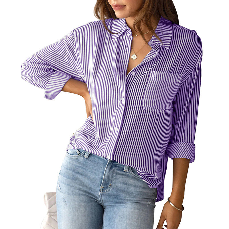 • Stylisches Design: Die feinen Streifen verleihen der Bluse einen modernen Look, ideal für jede Gelegenheit.