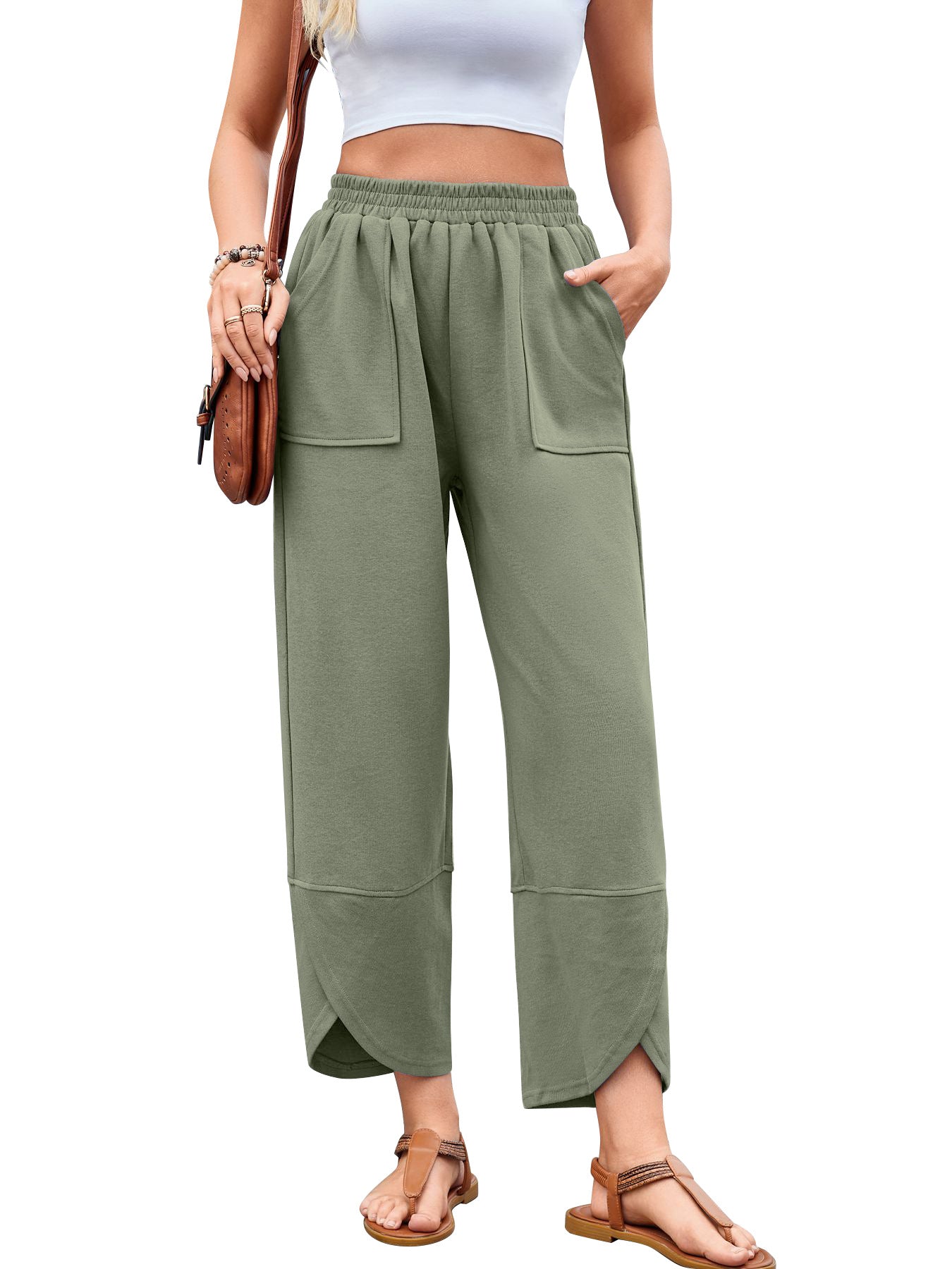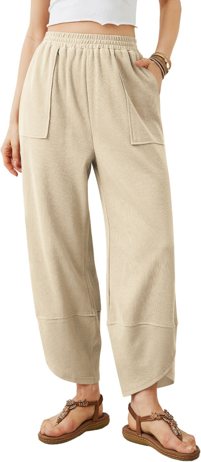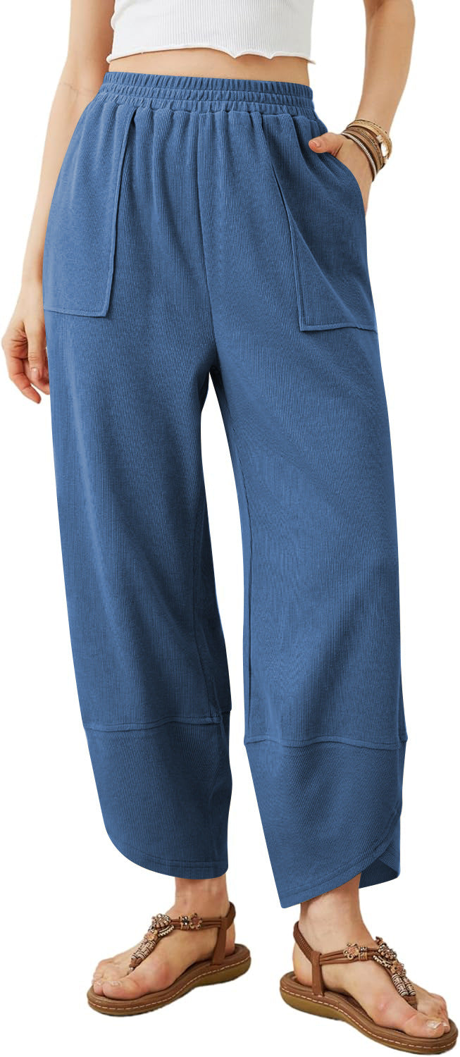 Damen weit geschnittene Freizeithose mit elastischem Bund und praktischen Taschen Heidi-Mode