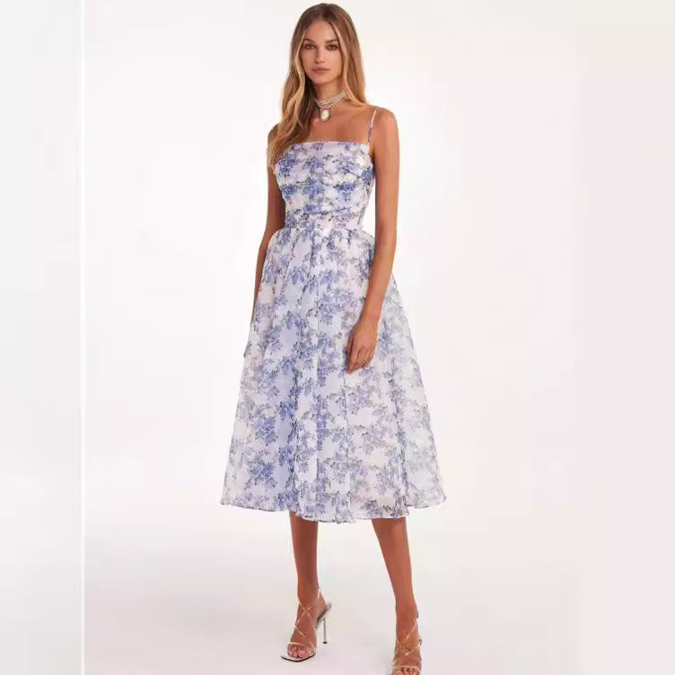 Heidi-Mode | Kleid mit Leuchtenden Blumen Abendkleid für Damen Glänzendes Topkleid