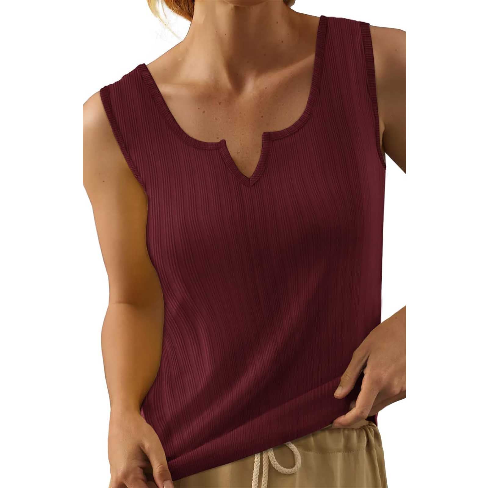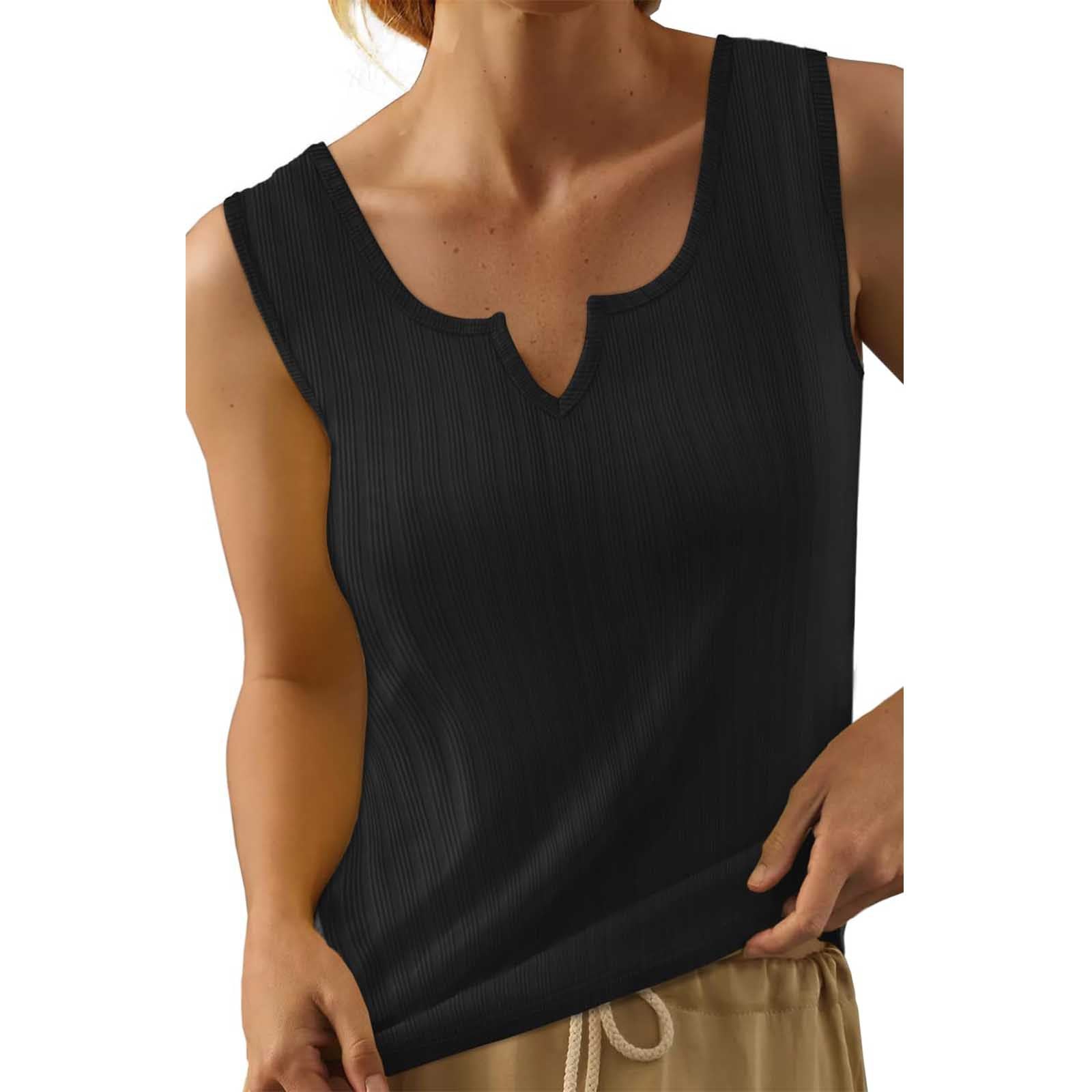 Damen Ärmelloses Oberteil mit dekorativem V-Ausschnitt und feiner Rippenstruktur Heidi-Mode