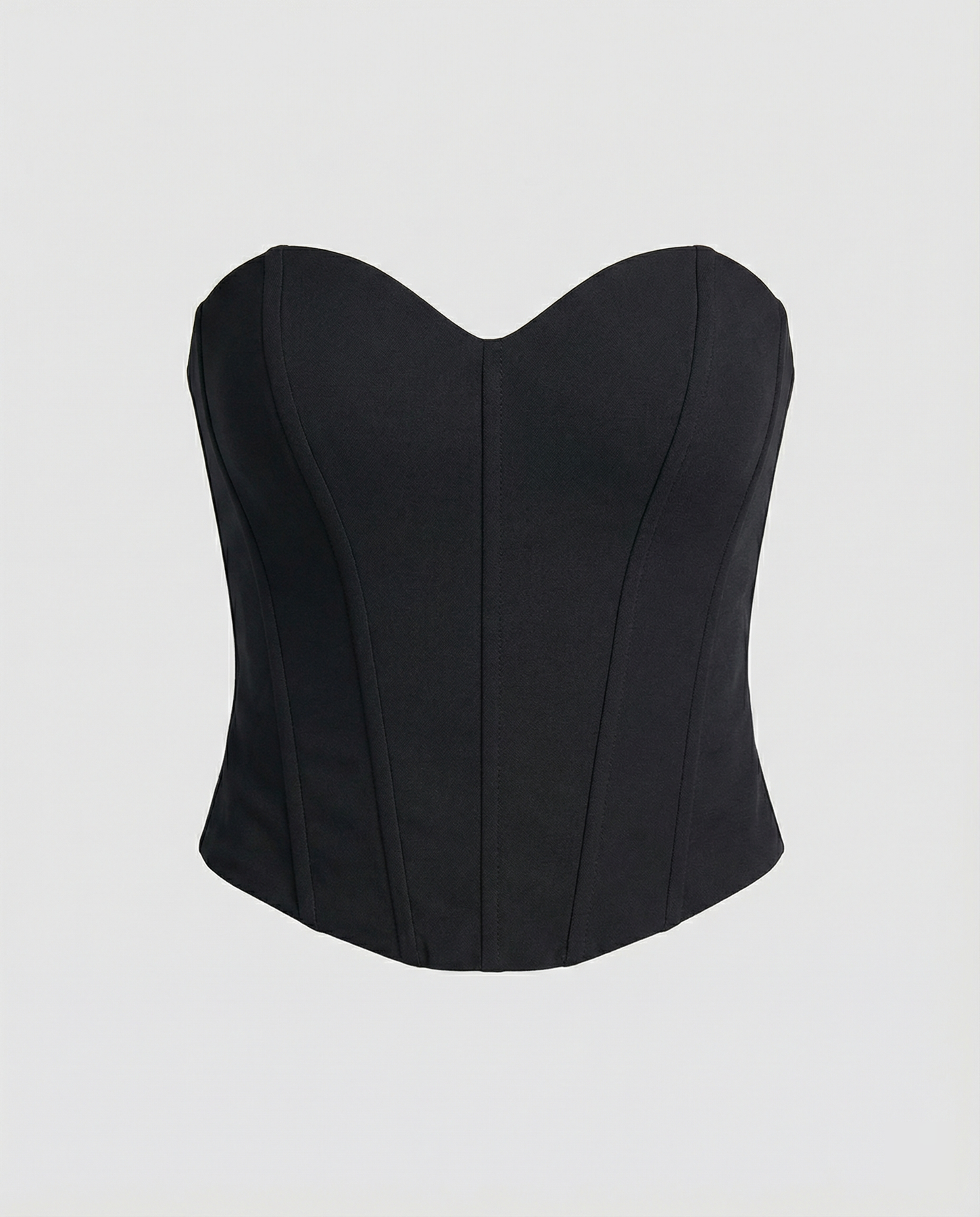 korsett top, genaue maße, elastan, polyester, slim fit, herzförmiger ausschnitt, reißverschluss