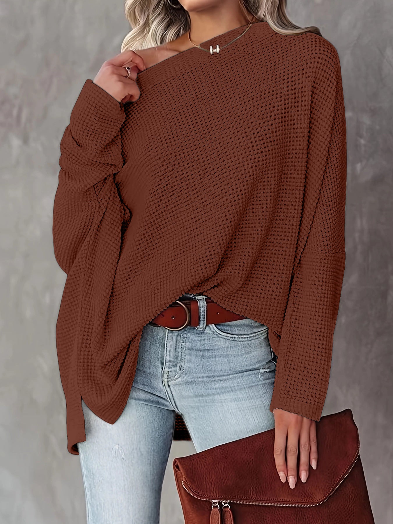 Damen lässiger Off-Shoulder Pullover im Strukturdesign Heidi-Mode