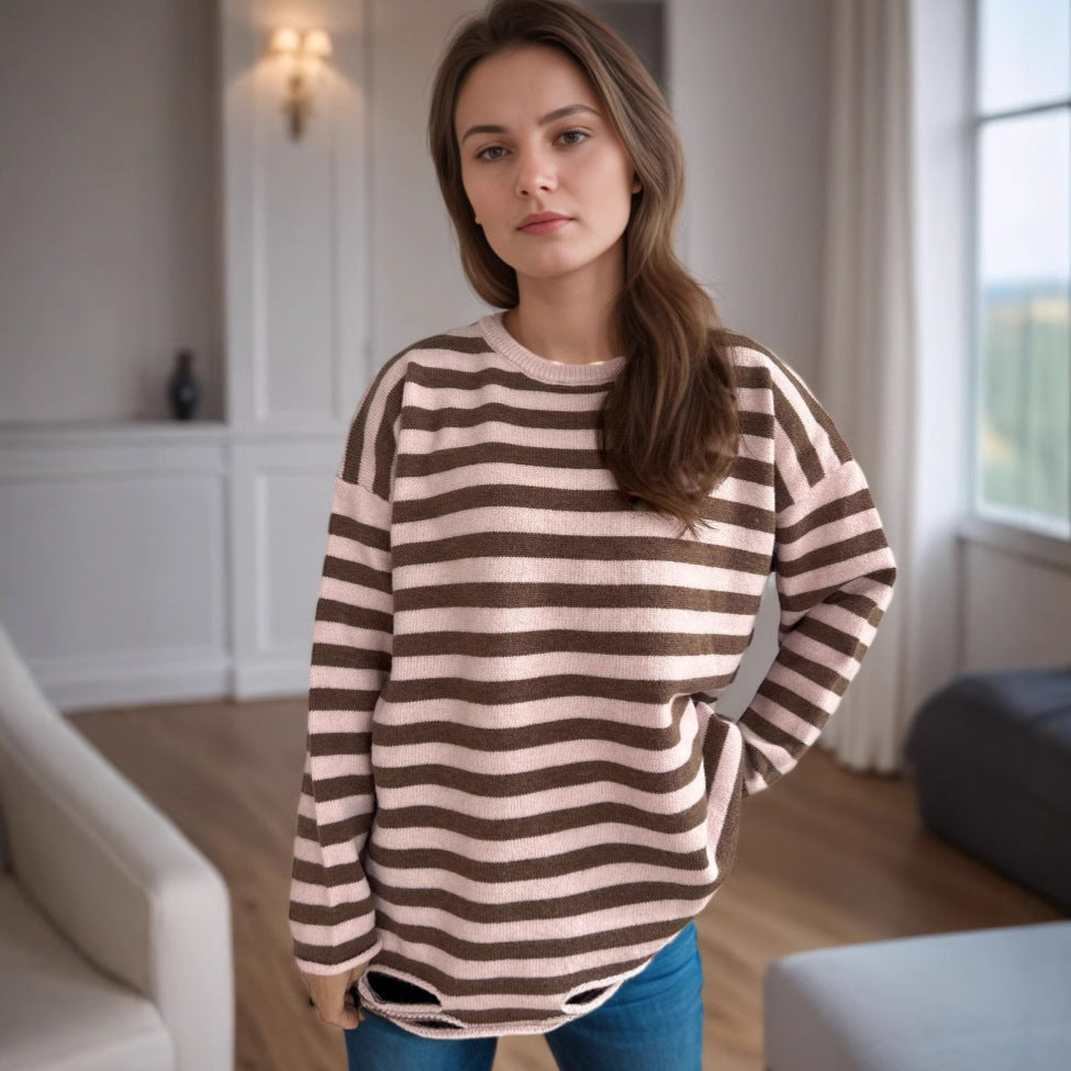 Damen lässiger Oversize-Pullover mit breiten Streifen Heidi-Mode