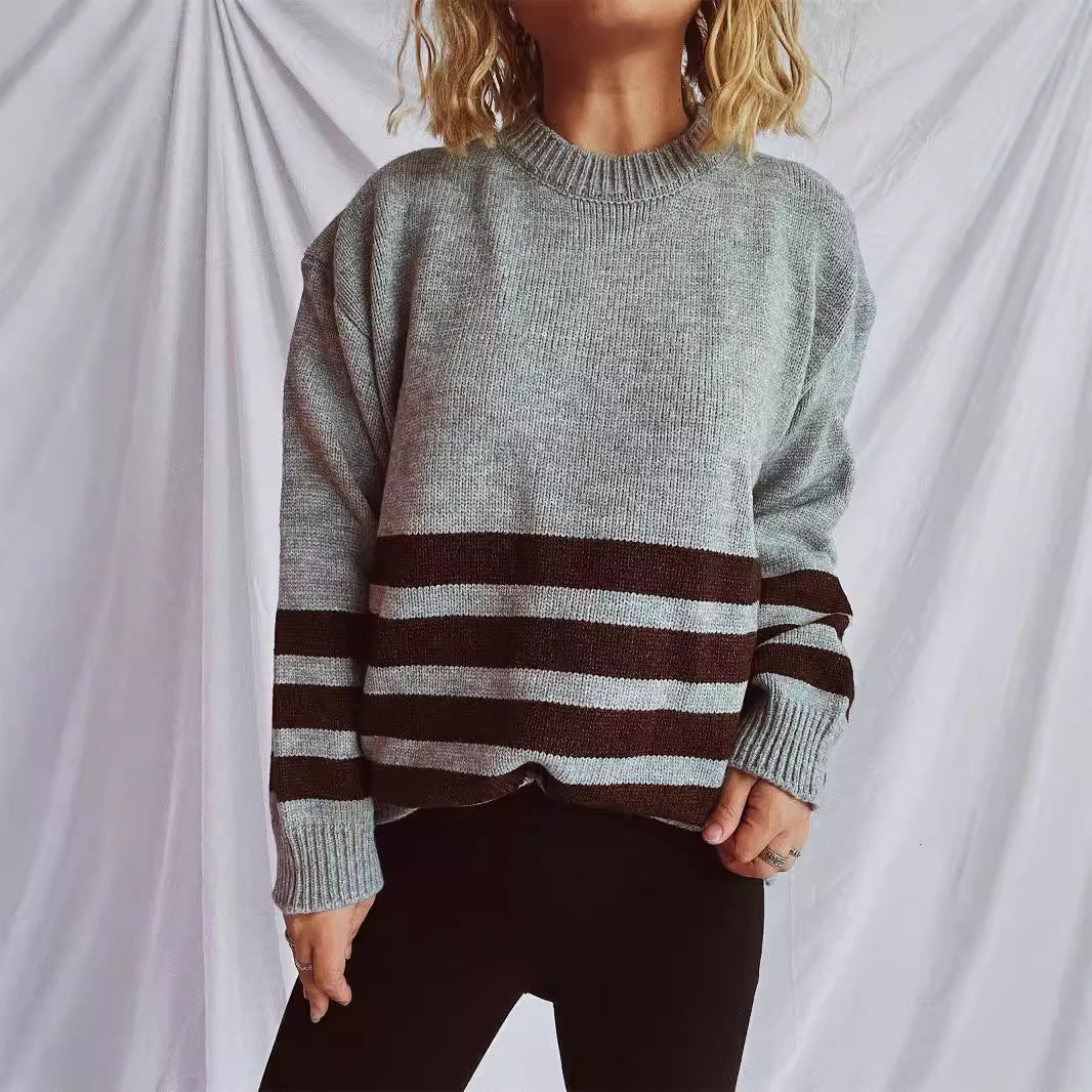 Damen lässiger Oversize-Pullover mit modernem Streifenmuster Heidi-Mode