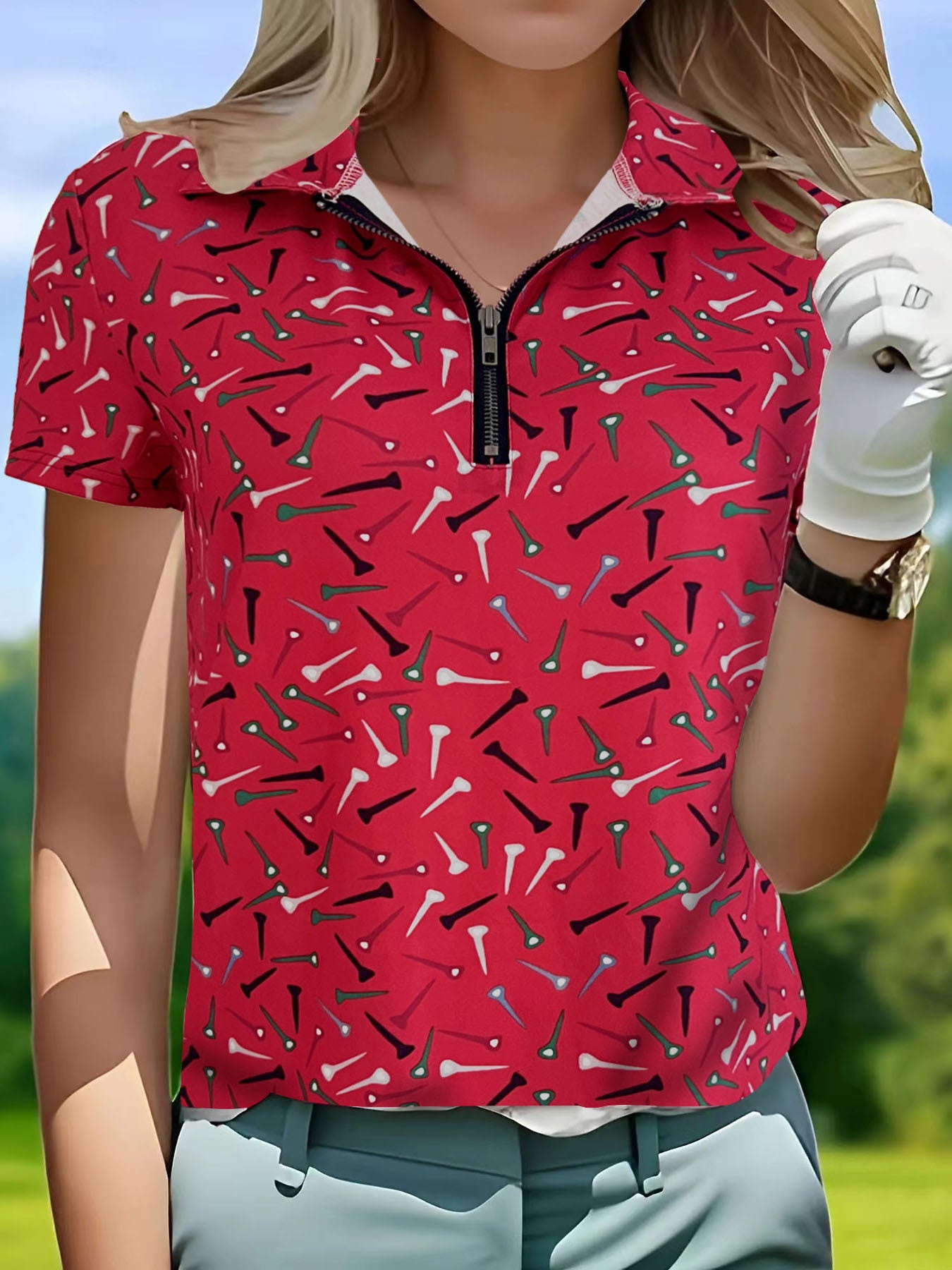 - Design: Auffälliges Muster mit Golf-Tee-Motiven
