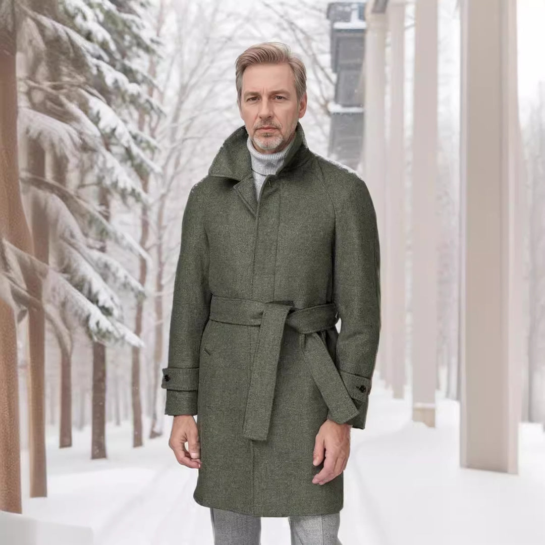 Herren eleganter Trenchcoat mit Schalkragen und Gürtel Heidi-Mode