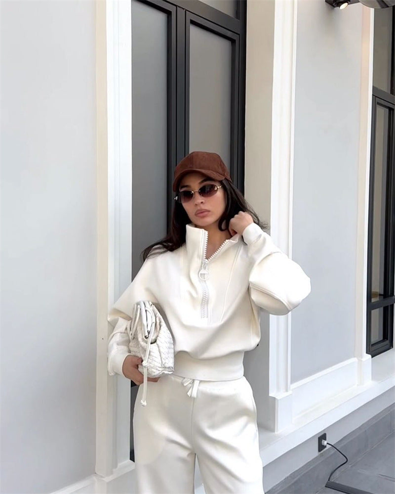 Damen gemütliches Fleece-Loungewear-Set mit hochgezogenem Kragen und lockerer Passform Heidi-Mode
